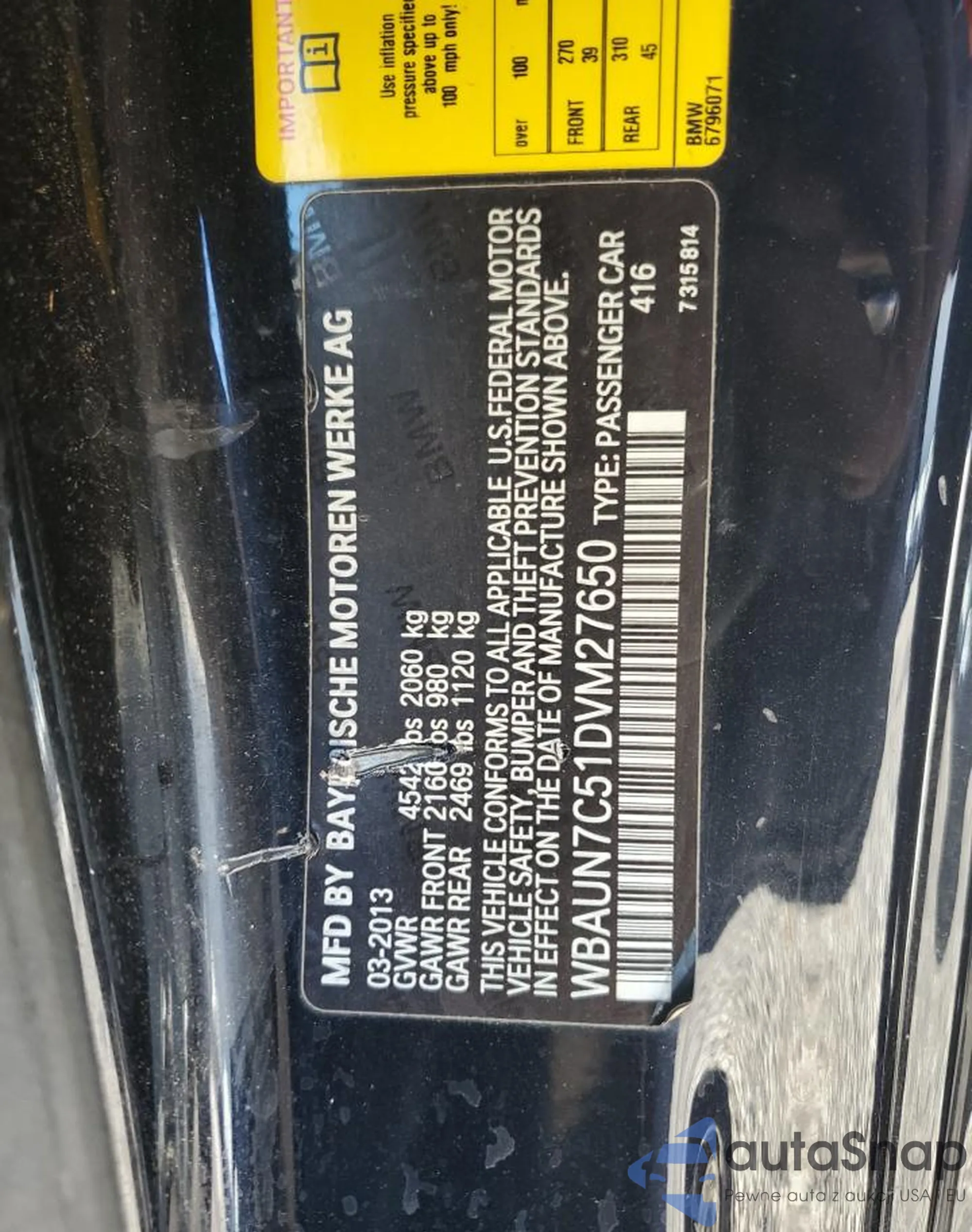 VIN: WBAUN7C51DVM27650