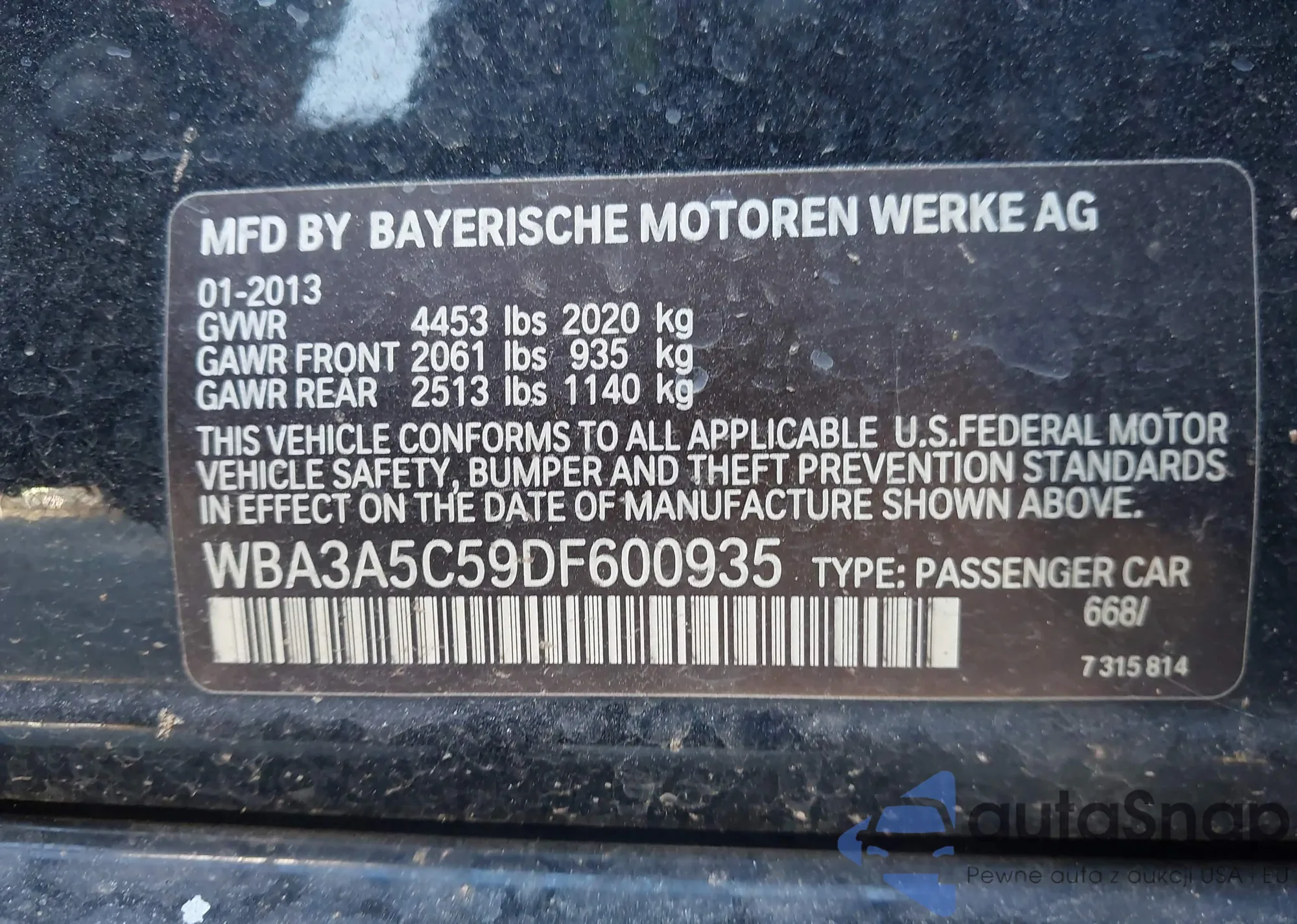 VIN: WBA3A5C59DF600935
