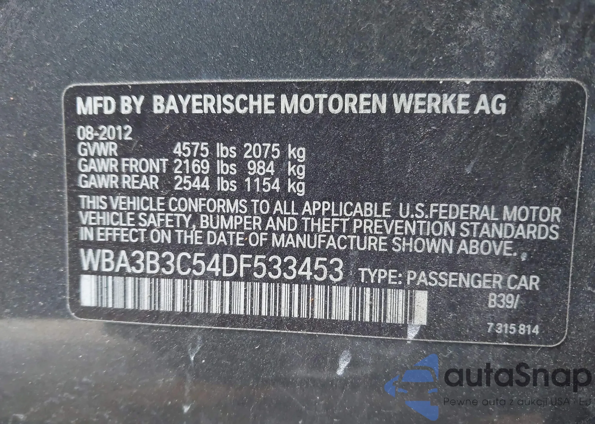 VIN: WBA3B3C54DF533453