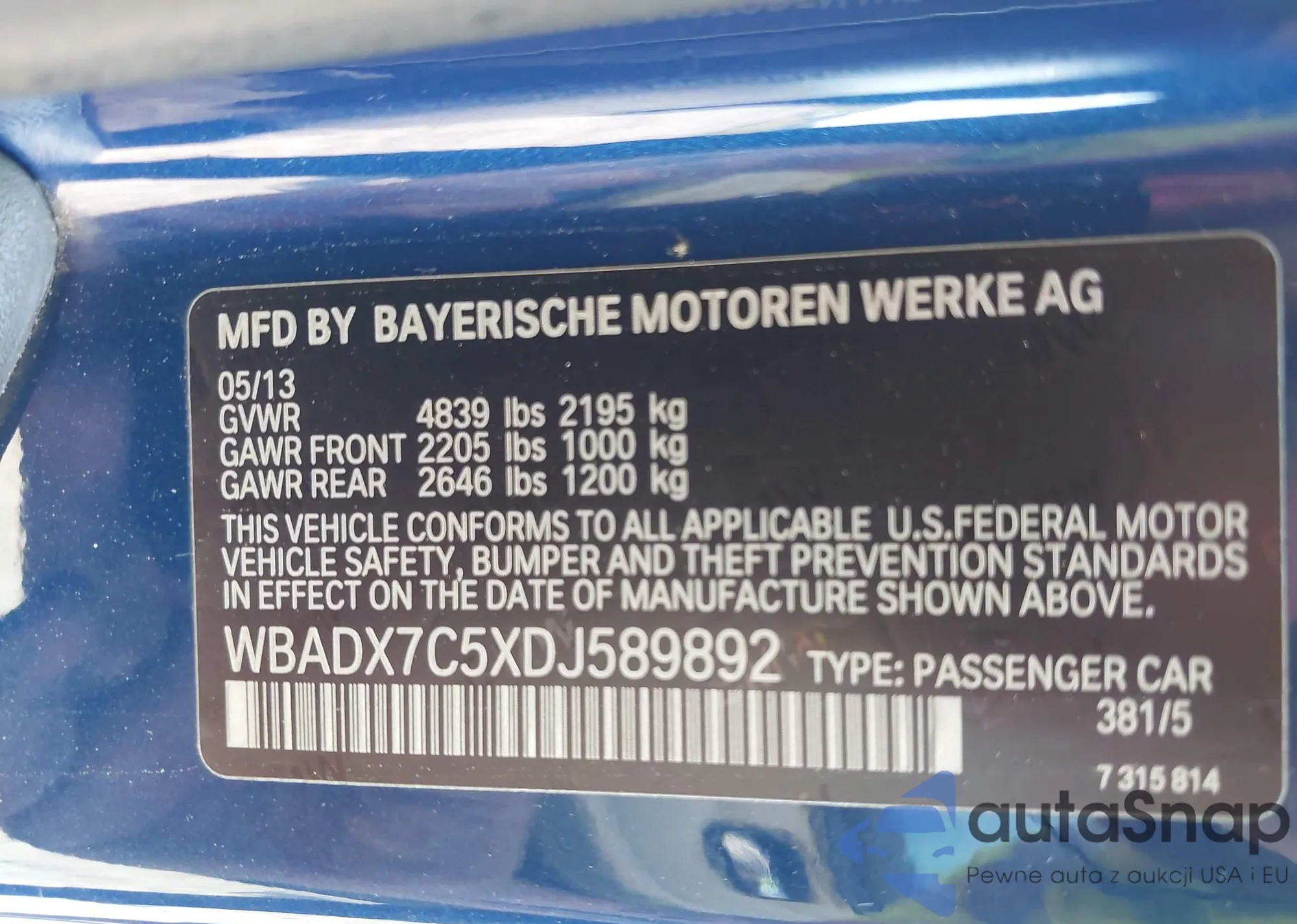 VIN: WBADX7C5XDJ589892