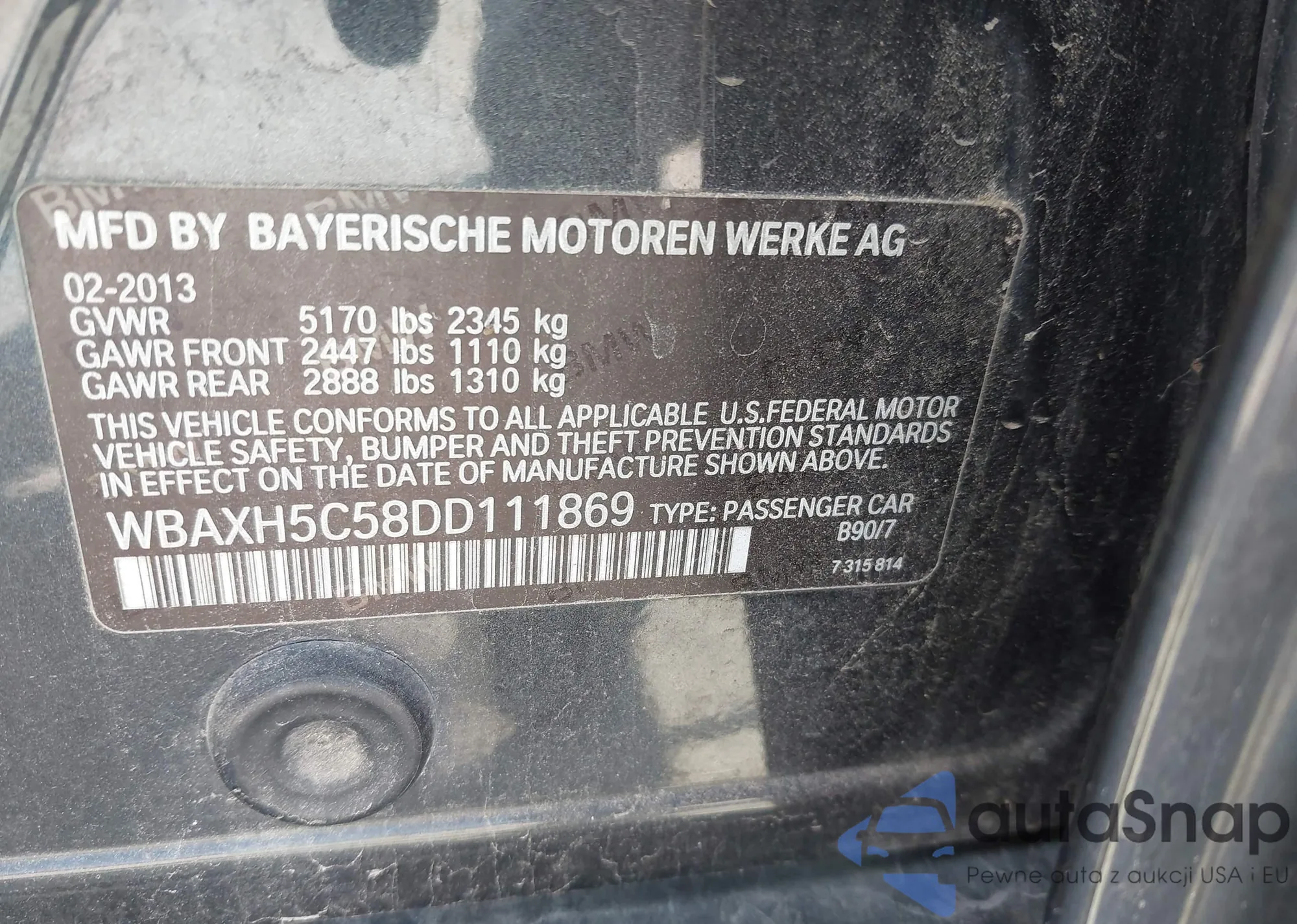 VIN: WBAXH5C58DD111869