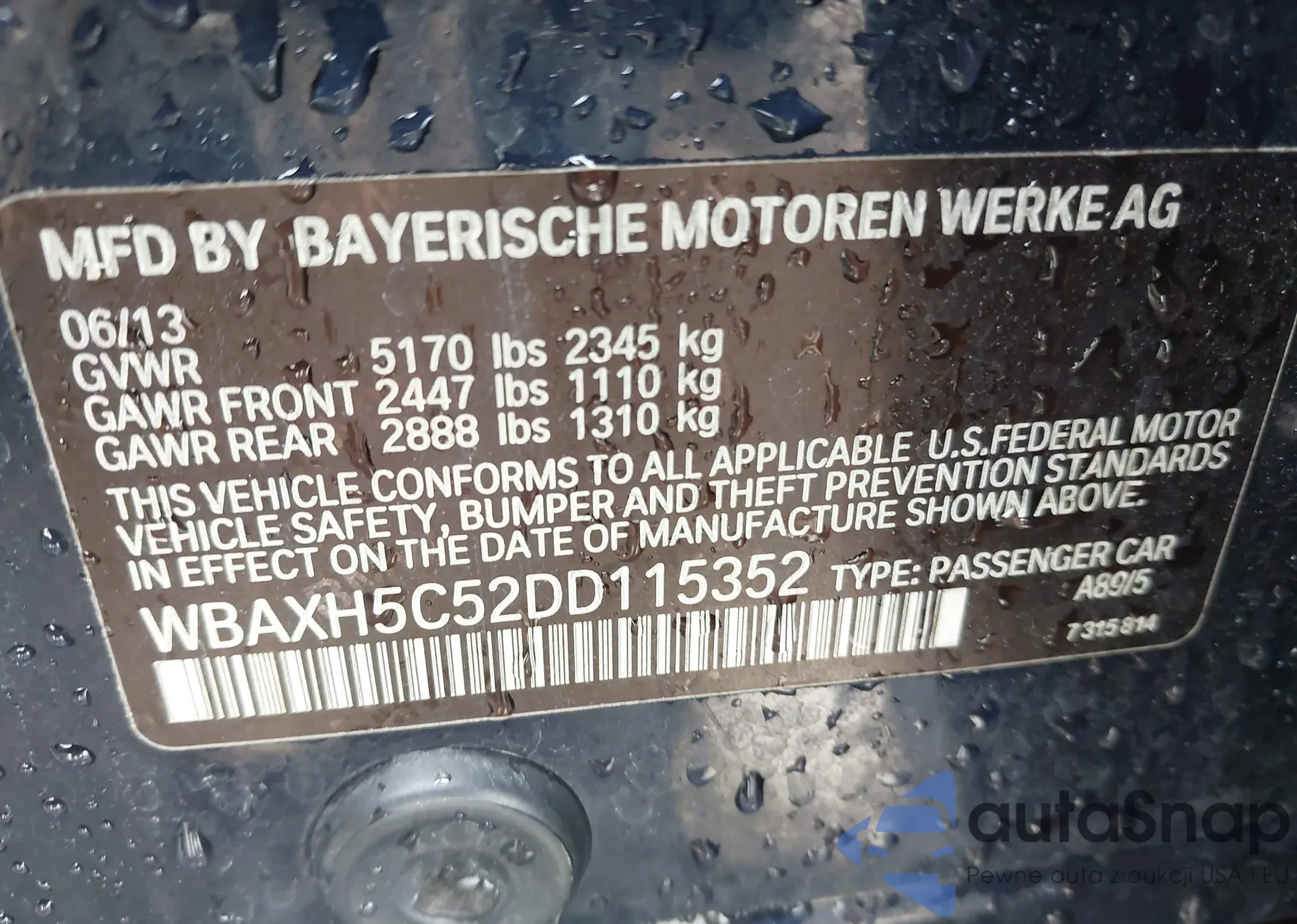 VIN: WBAXH5C52DD115352