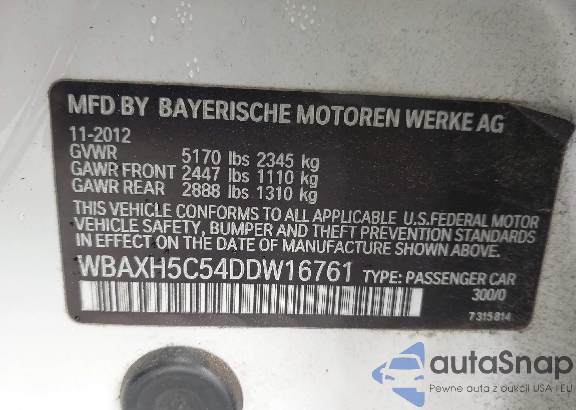 VIN: WBAXH5C54DDW16761