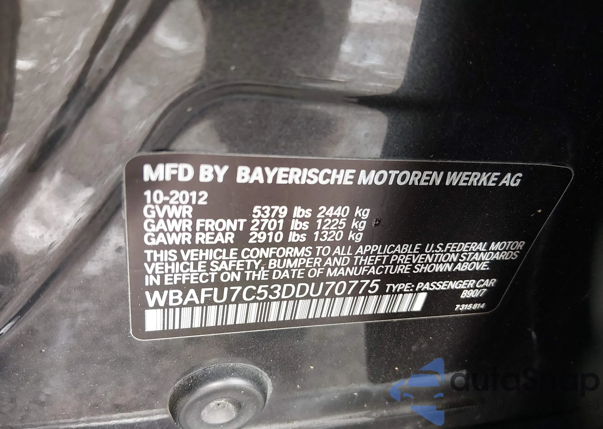 • VIN: WBAFU7C53DDU70775