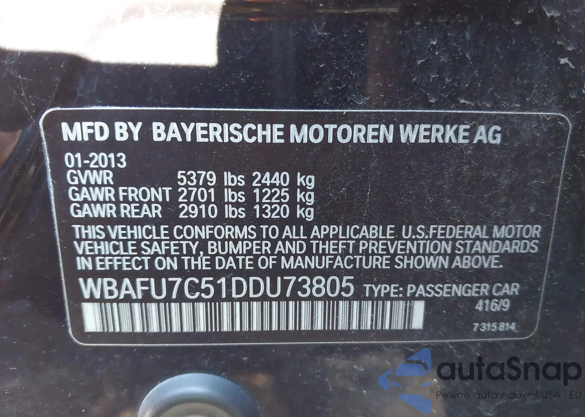 VIN: WBAFU7C51DDU73805