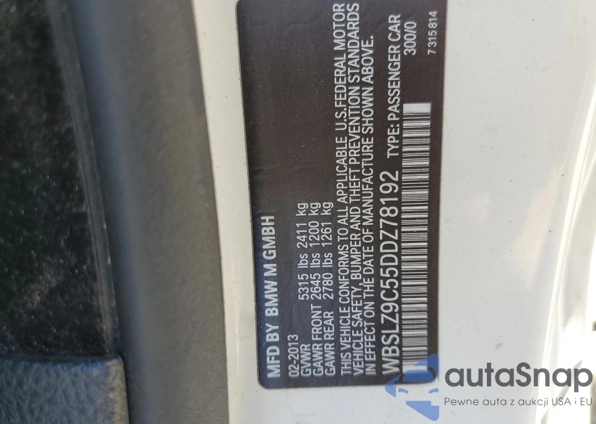 VIN: WBSLZ9C55DDZ78192