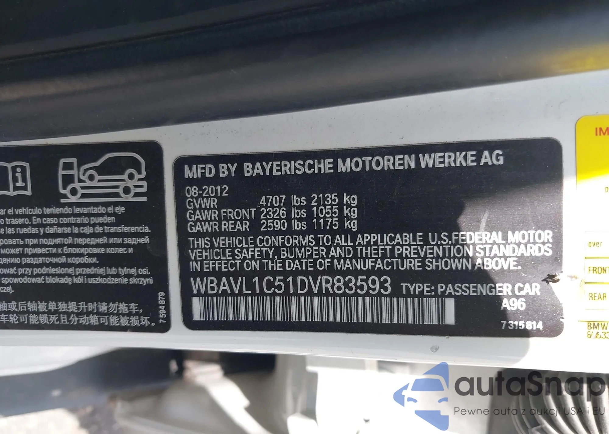 VIN: WBAVL1C51DVR83593