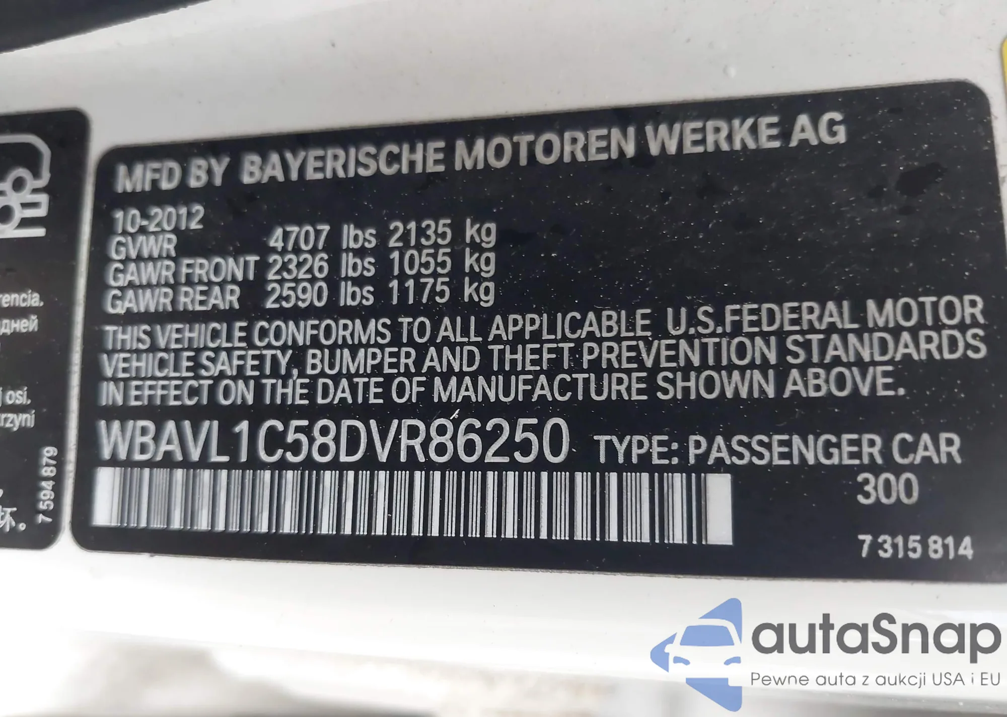 VIN: WBAVL1C58DVR86250