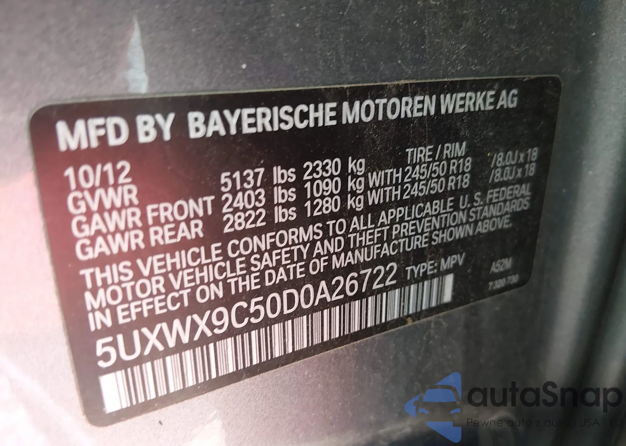 VIN: 5UXWX9C50D0A26722