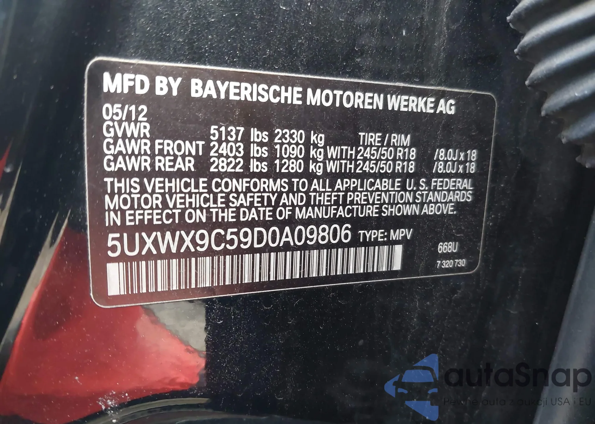 VIN: 5UXWX9C59D0A09806