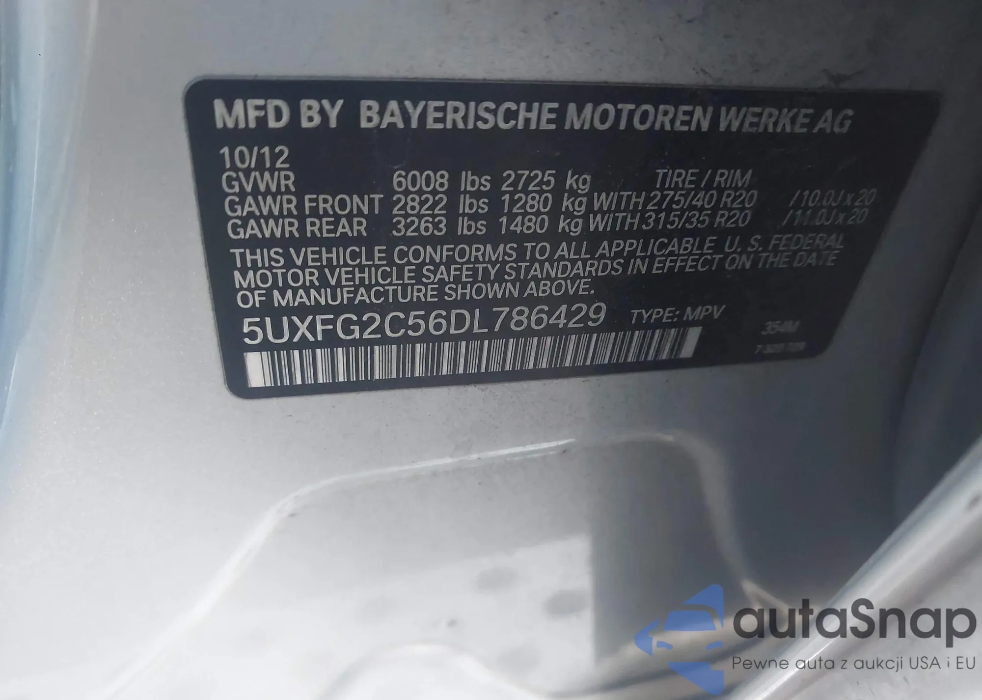 VIN: 5UXFG2C56DL786429