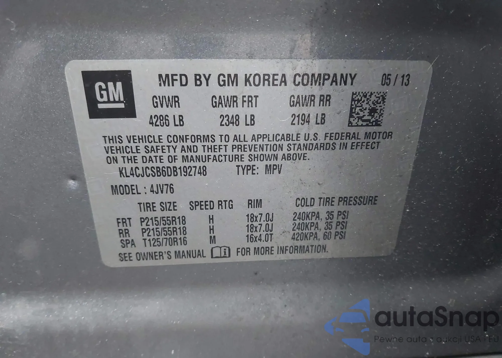 Автомобиль Buick Encore 2013 (VIN KL4CJCSB6DB192748) ранее не участвовал в торгах. Документы чистые, пробег соответствует или ниже среднего по рынку. Продаётся страховой компанией — рекомендуем покупку. Доставка в порт займет около 6–8 недель.