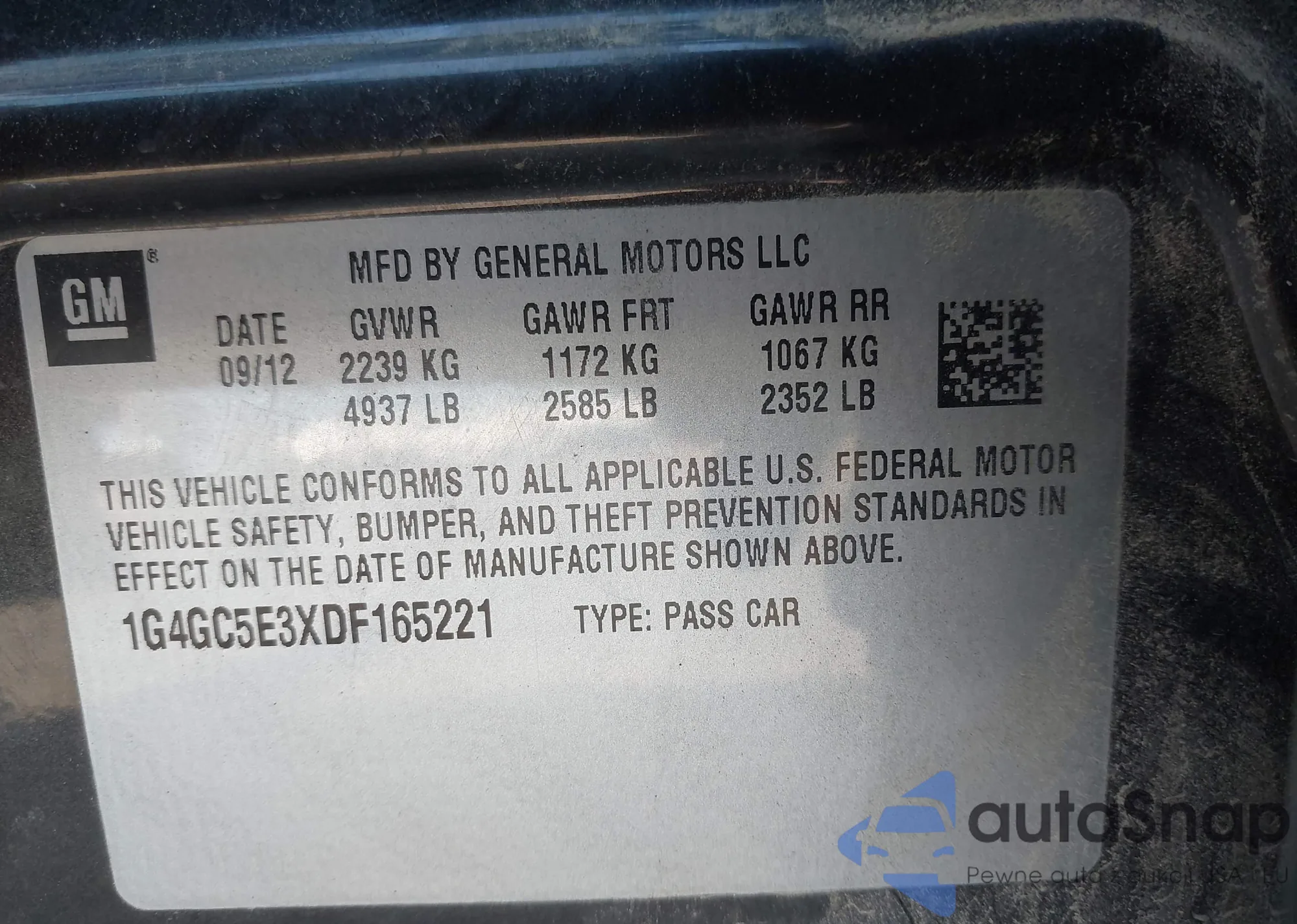 VIN: 1G4GC5E3XDF165221