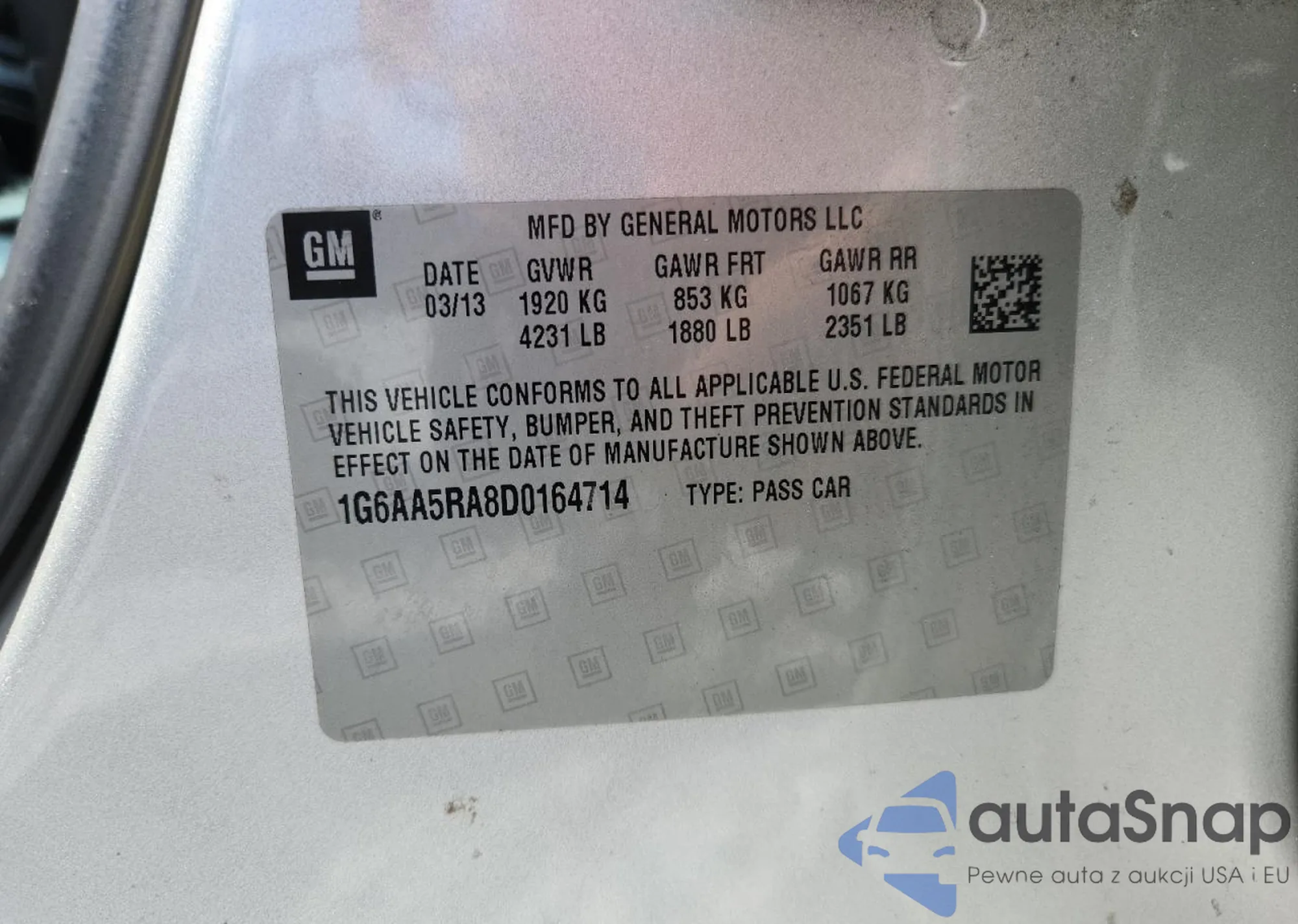 VIN: 1G6AA5RA8D0164714