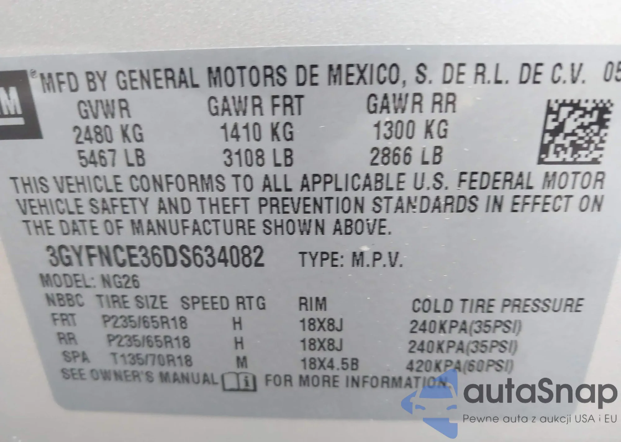 VIN: 3GYFNCE36DS634082