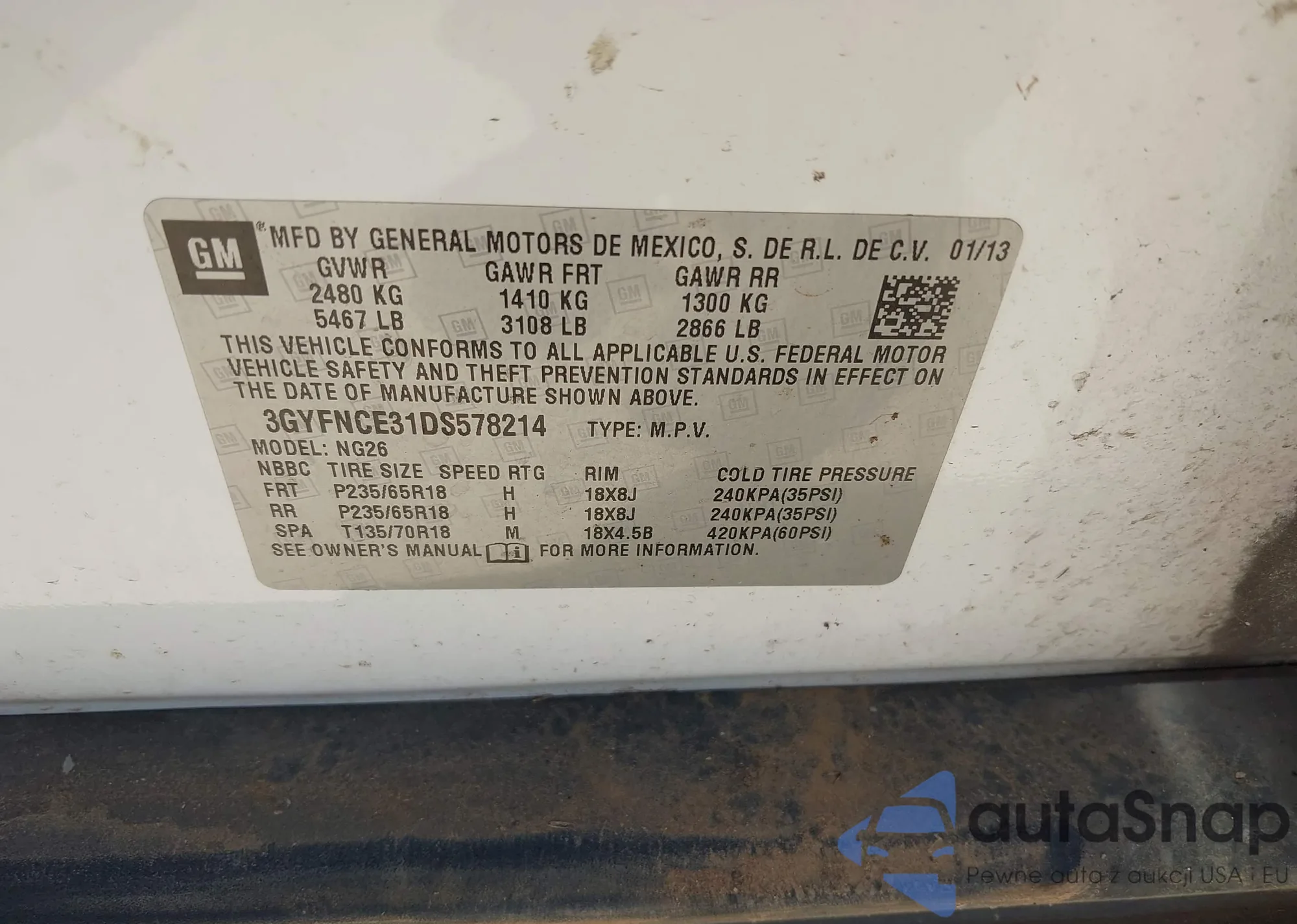 VIN: 3GYFNCE31DS578214