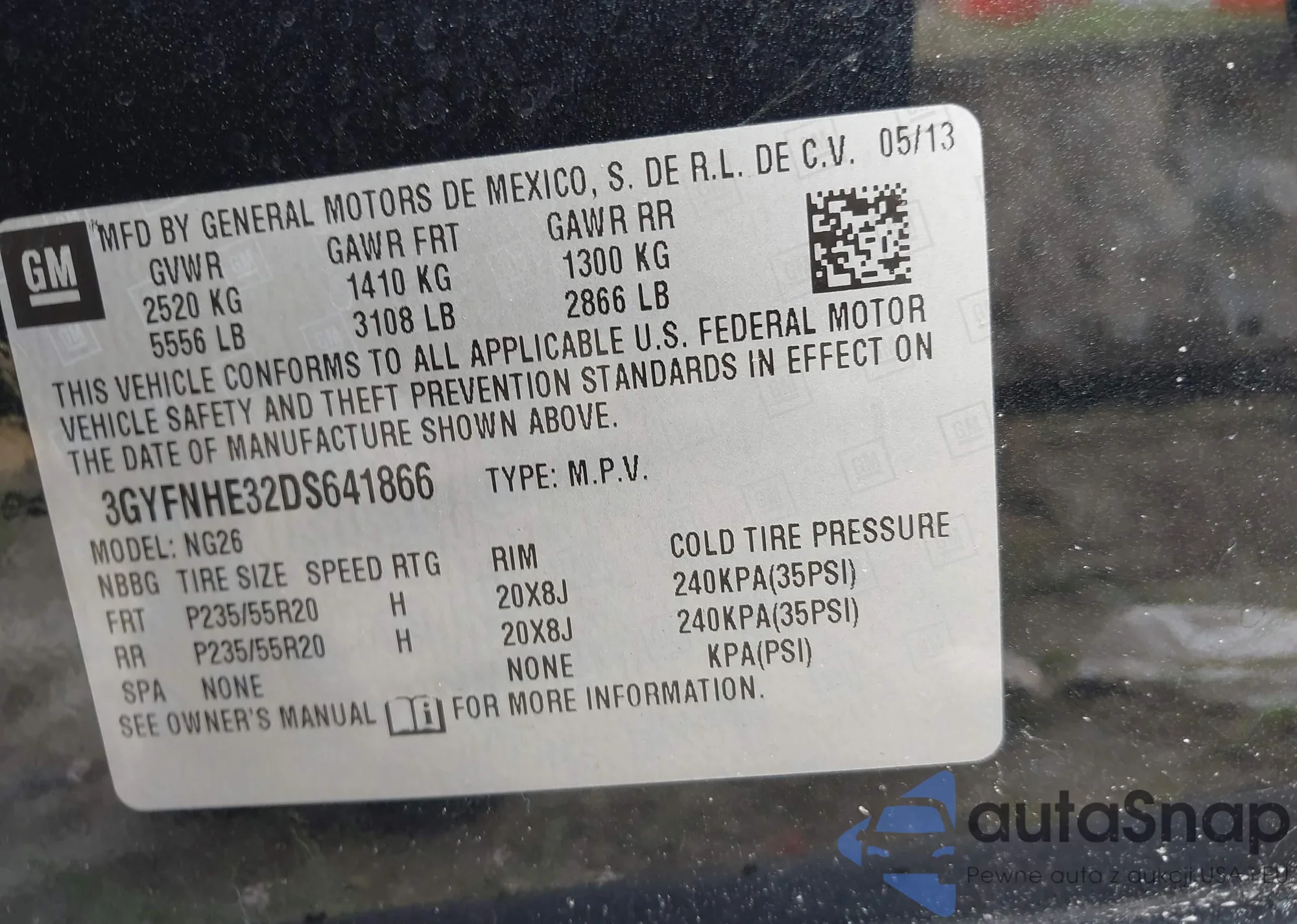 VIN: 3GYFNHE32DS641866