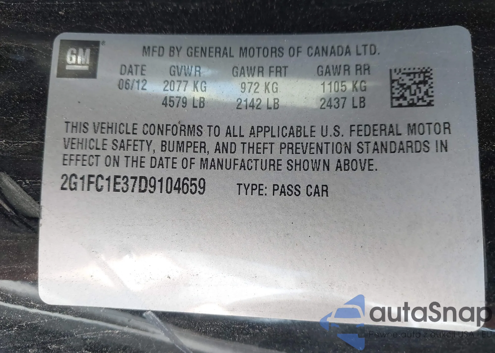 VIN: 2G1FC1E37D9104659