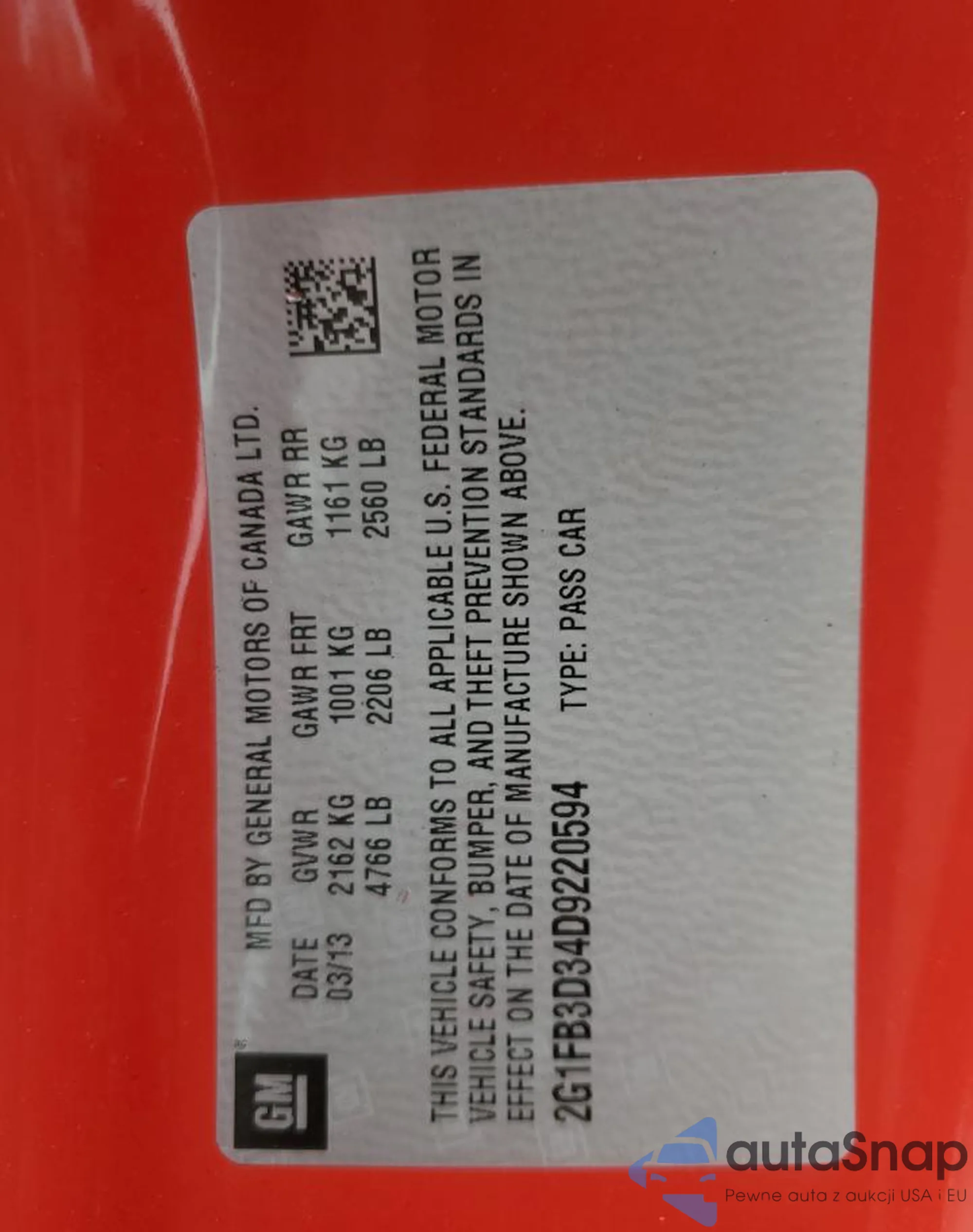 VIN: 2G1FB3D34D9220594
