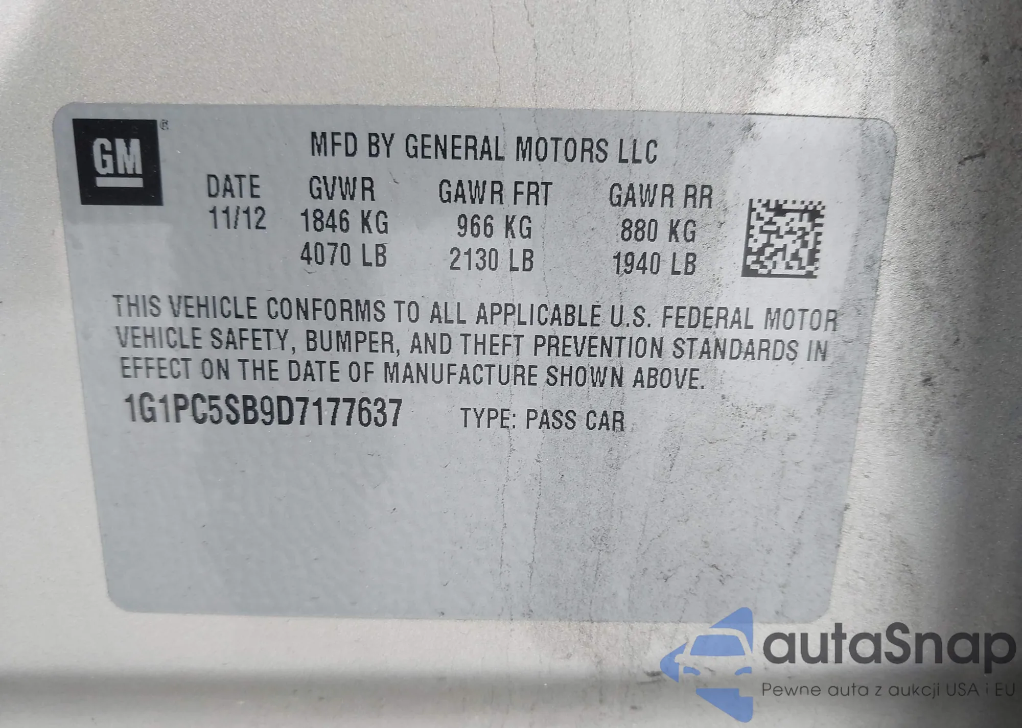 Автомобиль Chevrolet Cruze 2013 (VIN 1G1PC5SB9D7177637) ранее не участвовал в торгах. Документы чистые, пробег соответствует или ниже среднего по рынку. Продаётся страховой компанией — рекомендуем покупку. Доставка в порт займет около 6–8 недель.