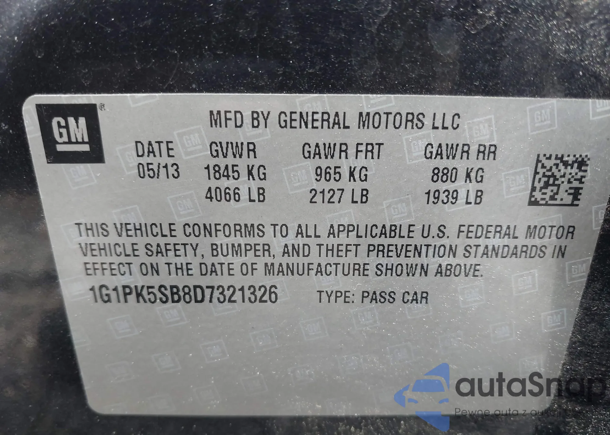 • VIN: 1G1PK5SB8D7321326