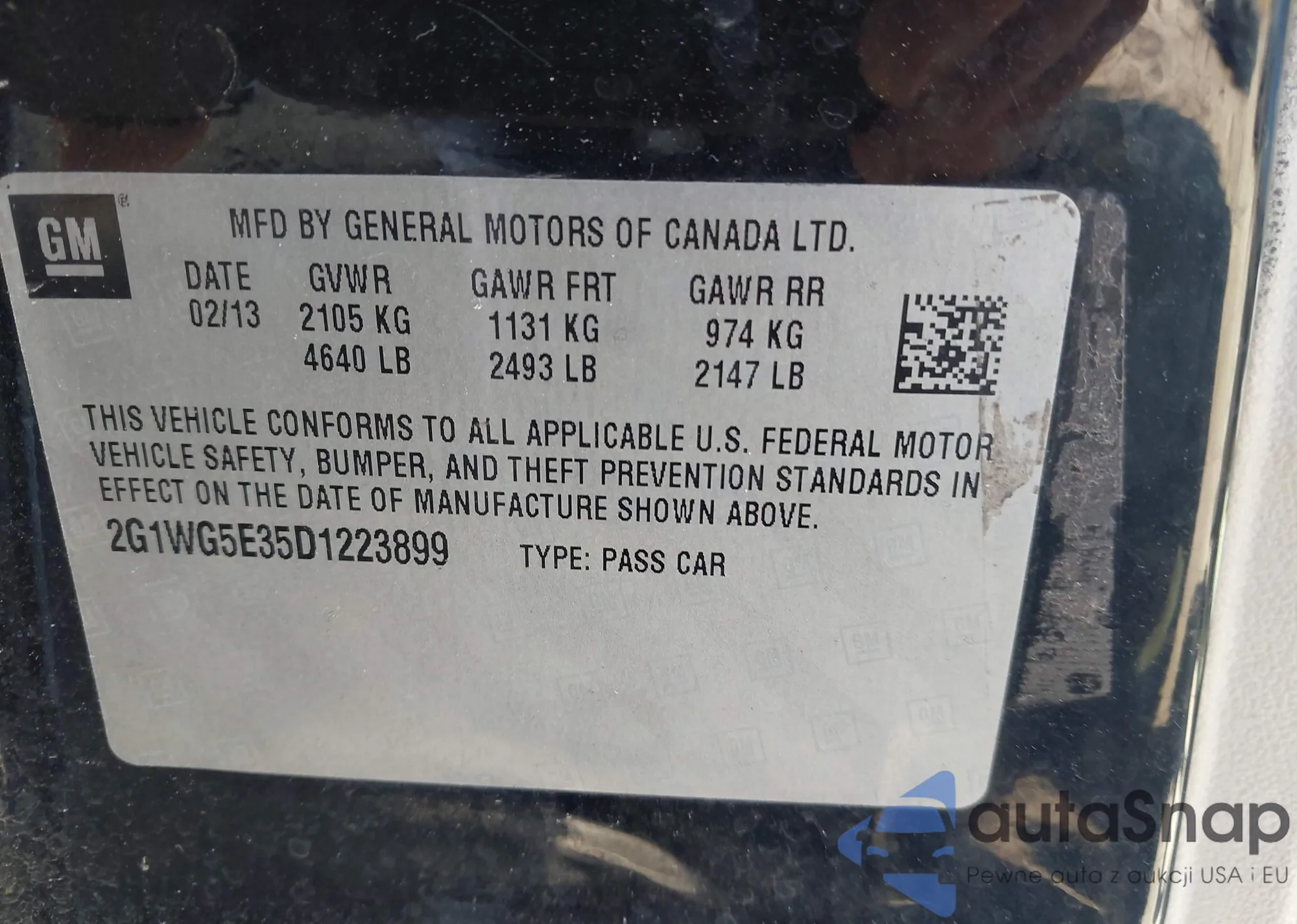 • VIN: 2G1WG5E35D1223899