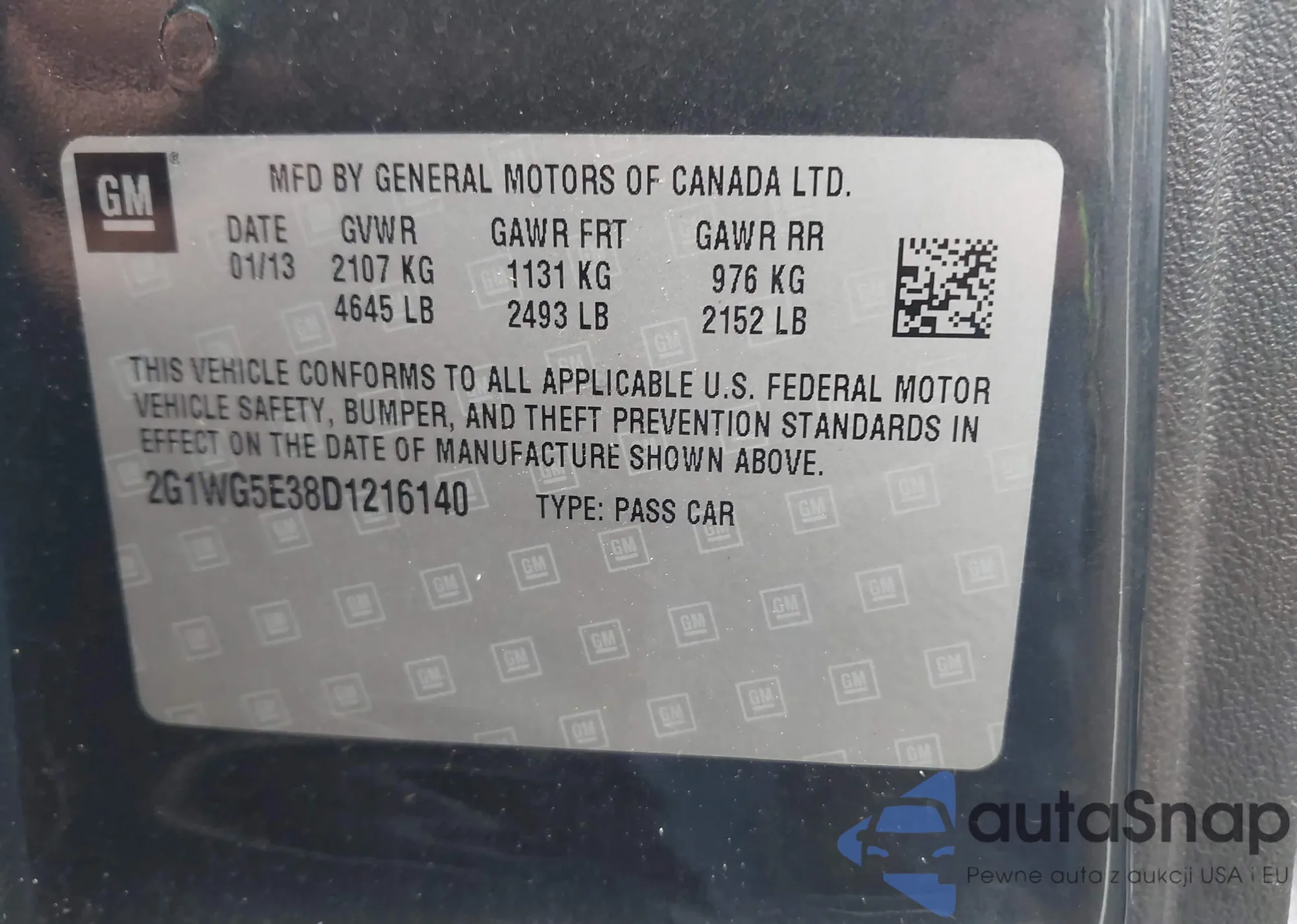 VIN: 2G1WG5E38D1216140