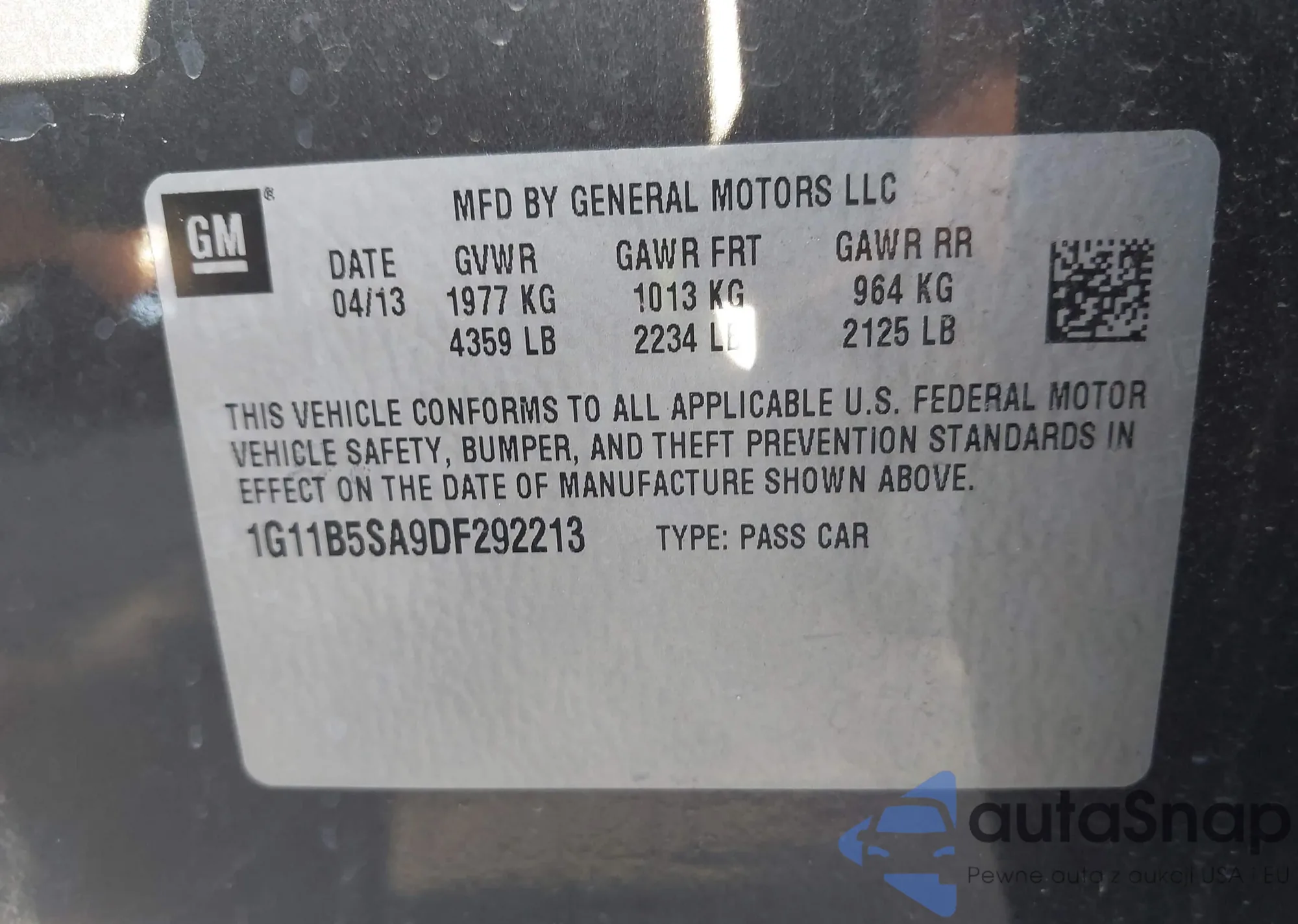 VIN: 1G11B5SA9DF292213
