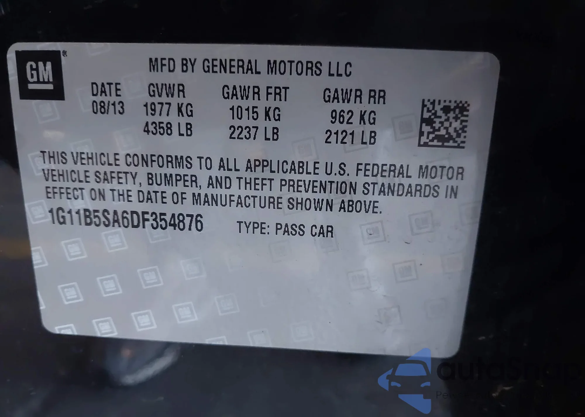VIN: 1G11B5SA6DF354876