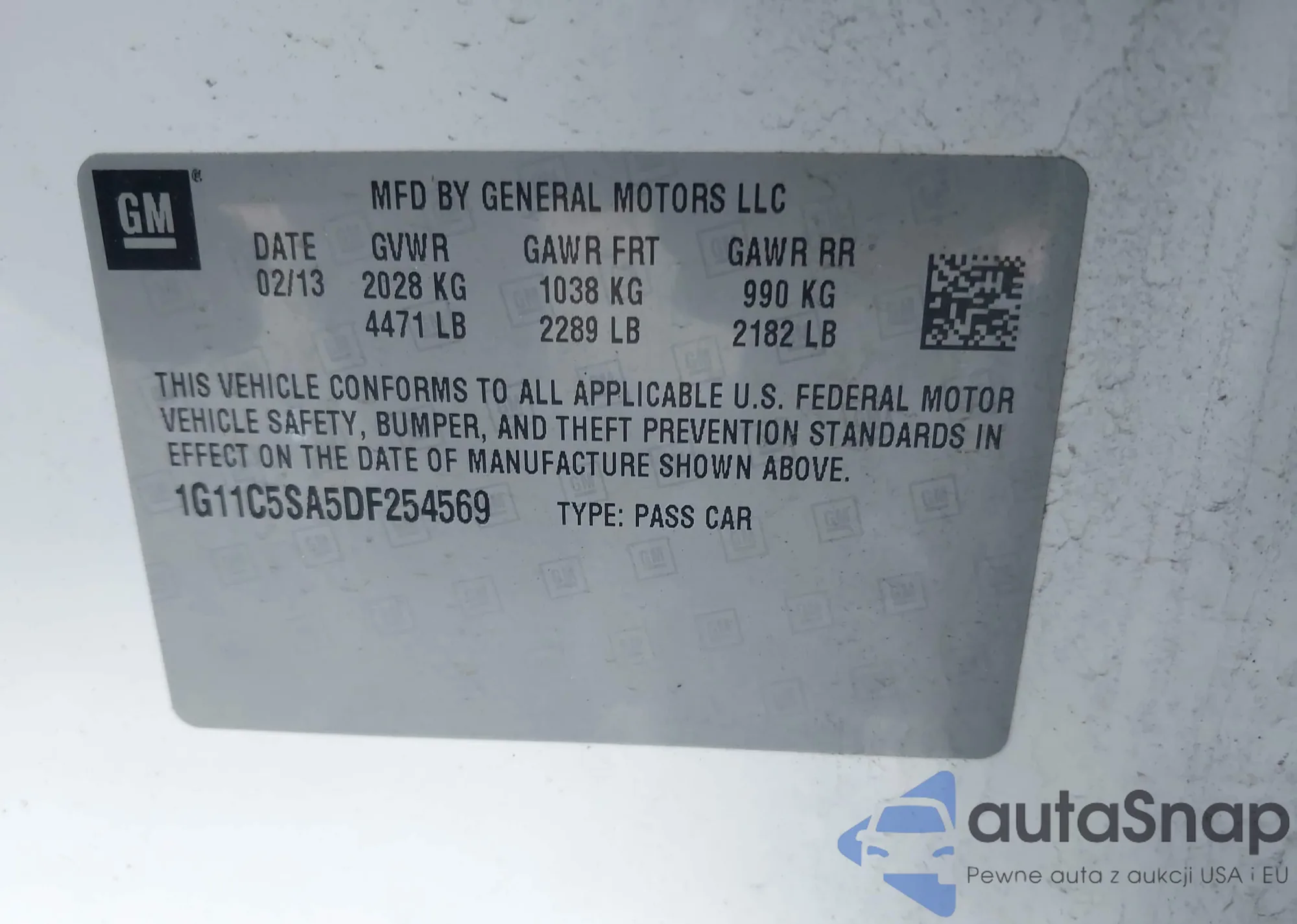 • VIN: 1G11C5SA5DF254569