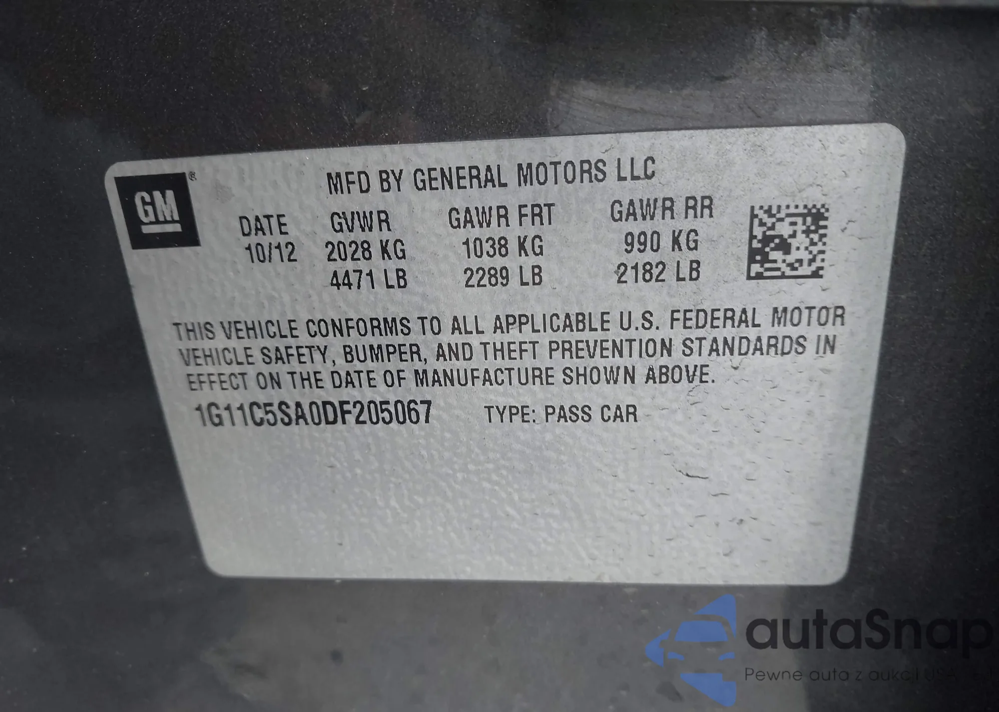 VIN: 1G11C5SA0DF205067