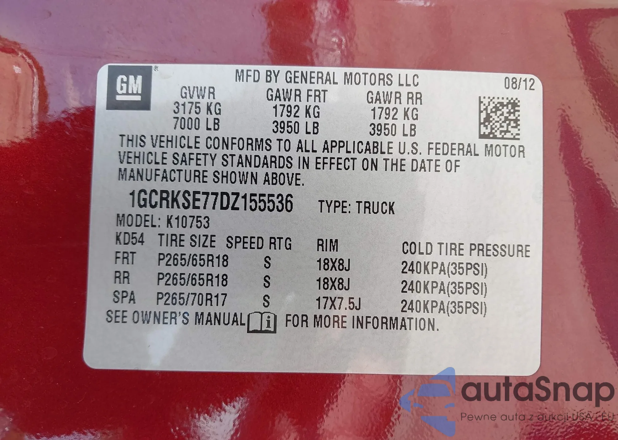 VIN: 1GCRKSE77DZ155536