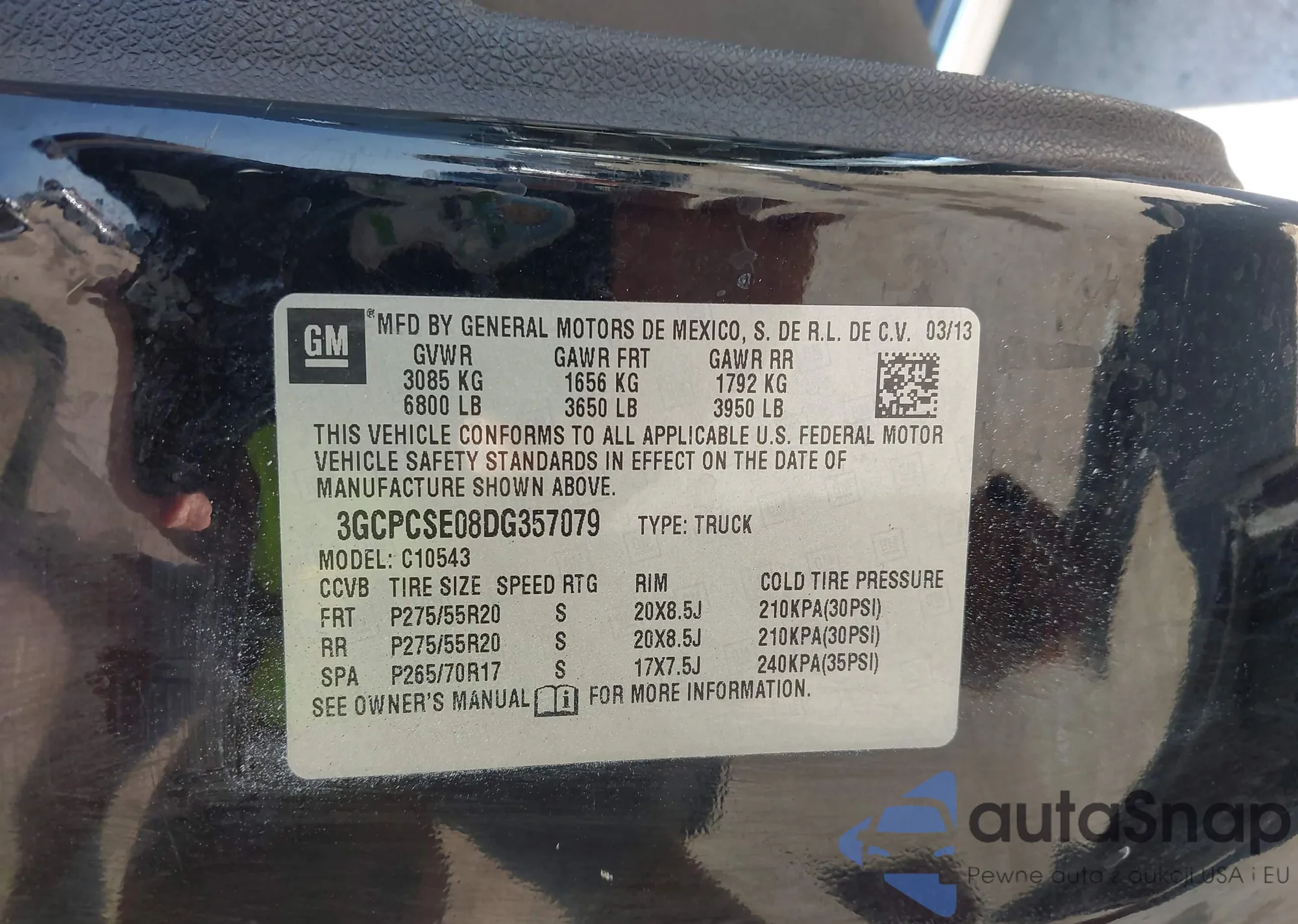 • VIN: 3GCPCSE08DG357079