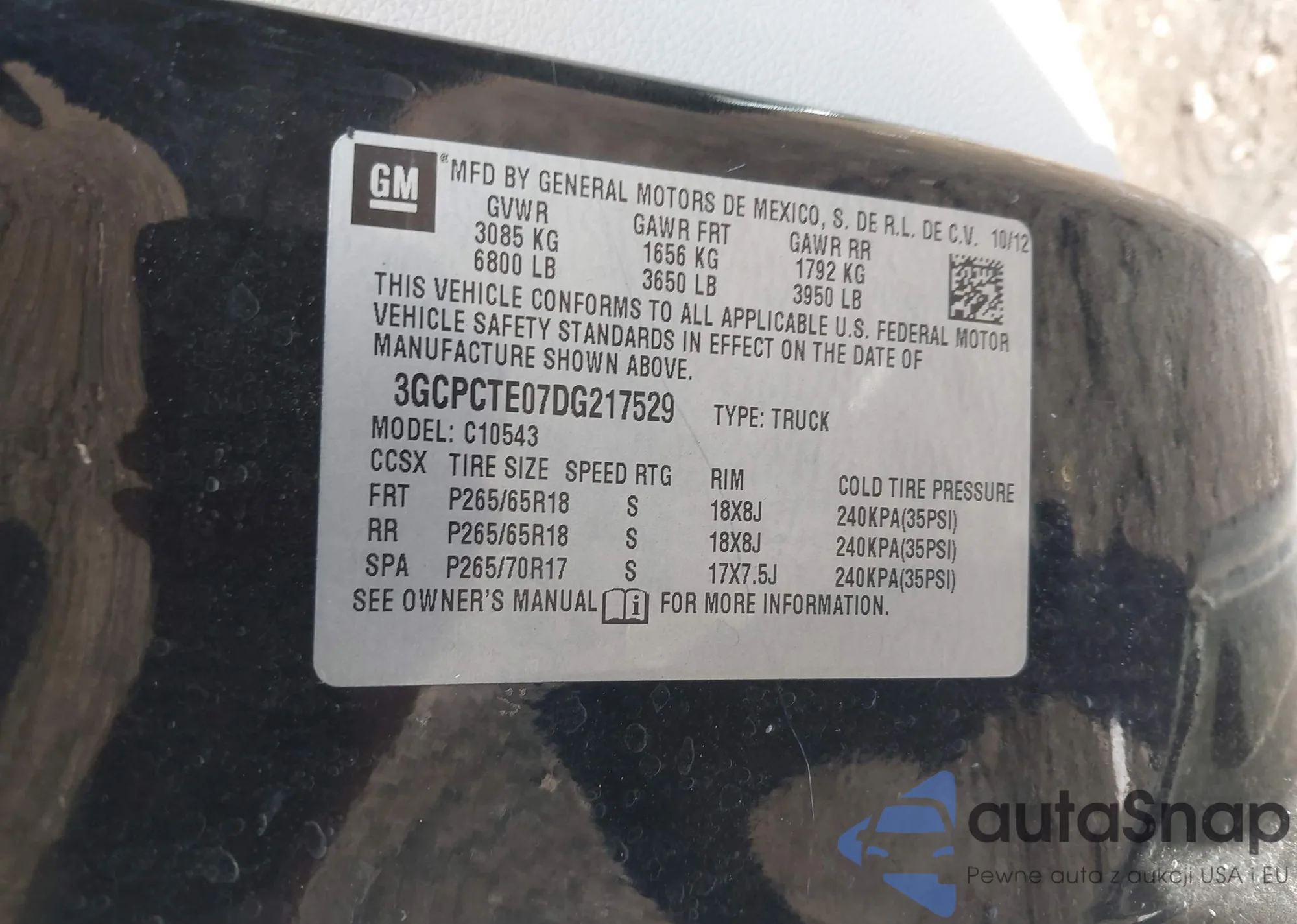 VIN: 3GCPCTE07DG217529