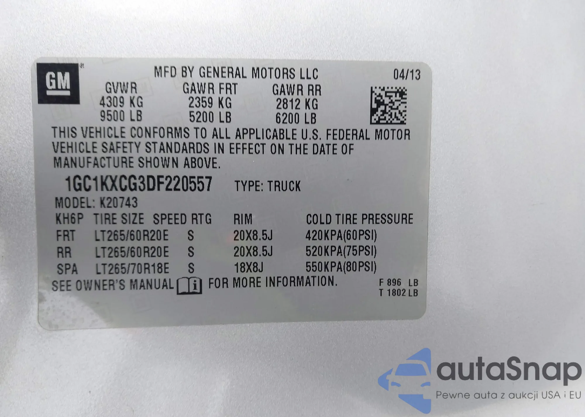 VIN: 1GC1KXCG3DF220557