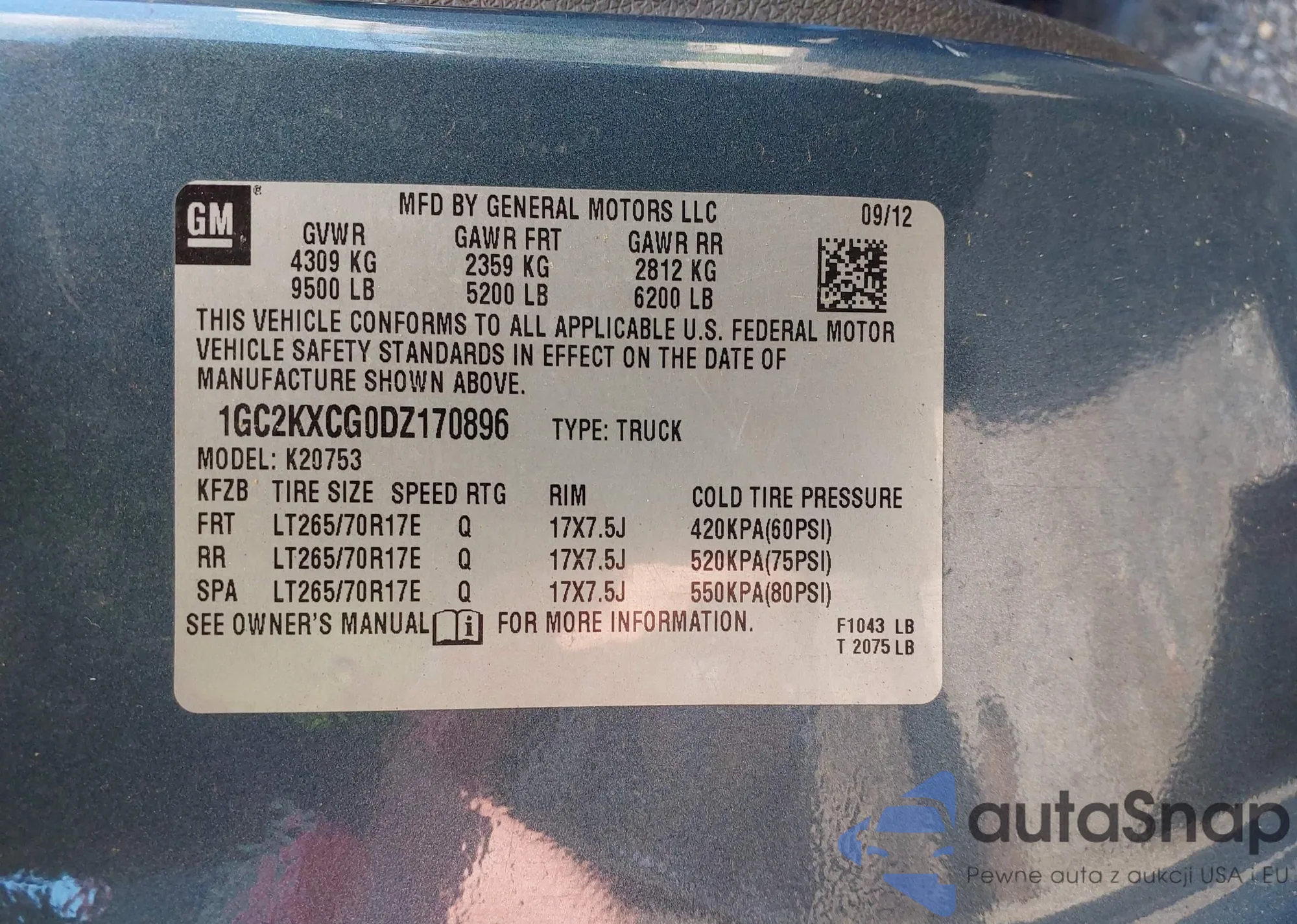 VIN: 1GC2KXCG0DZ170896