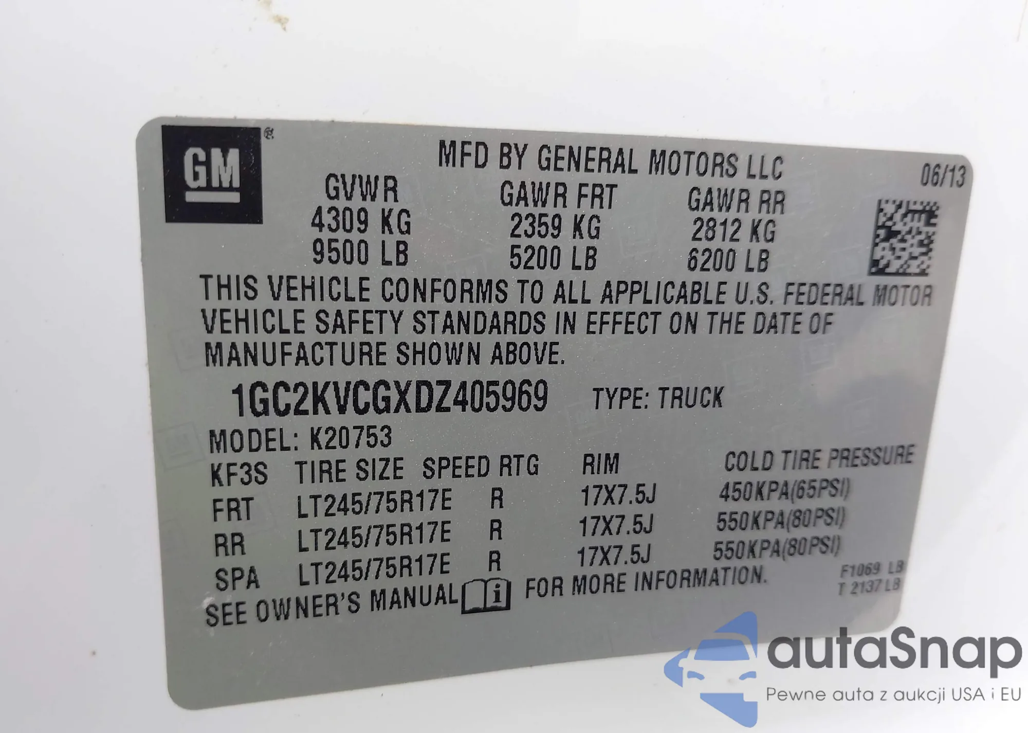 VIN: 1GC2KVCGXDZ405969