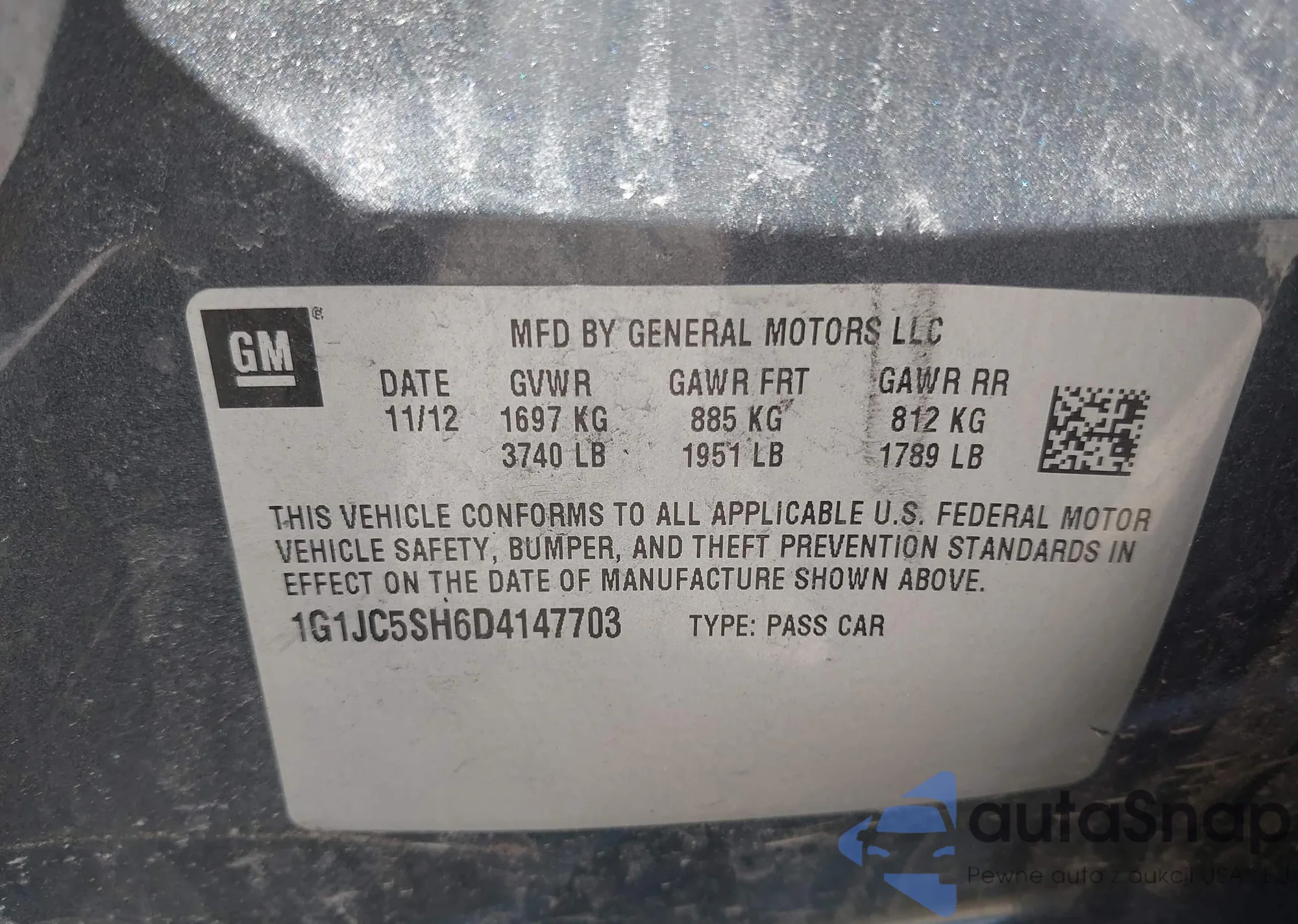 Автомобиль Chevrolet Sonic 2013 (VIN 1G1JC5SH6D4147703) ранее не участвовал в торгах. Документы чистые, пробег соответствует или ниже среднего по рынку. Продаётся страховой компанией — рекомендуем покупку. Доставка в порт займет около 6–8 недель.