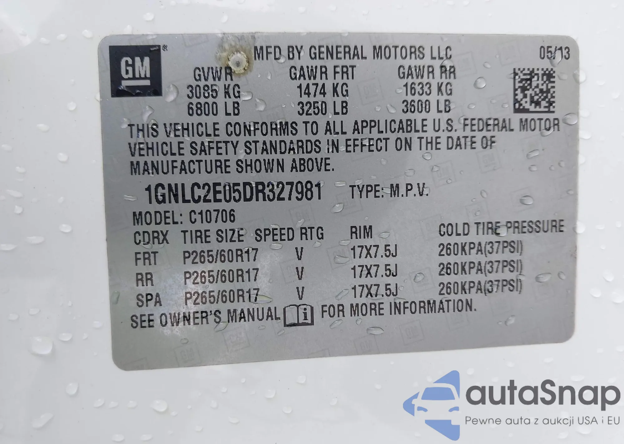 VIN: 1GNLC2E05DR327981