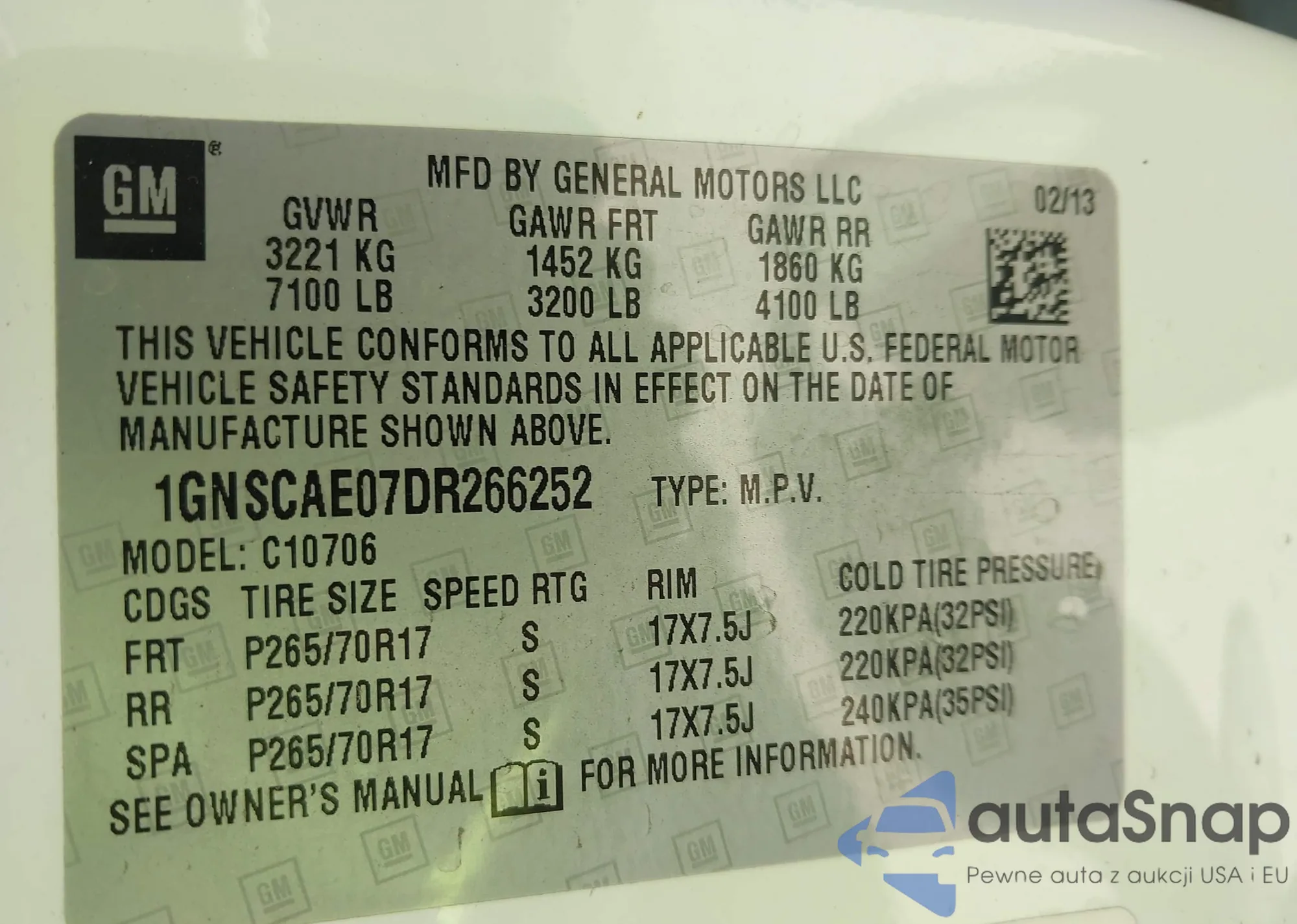 • VIN: 1GNSCAE07DR266252