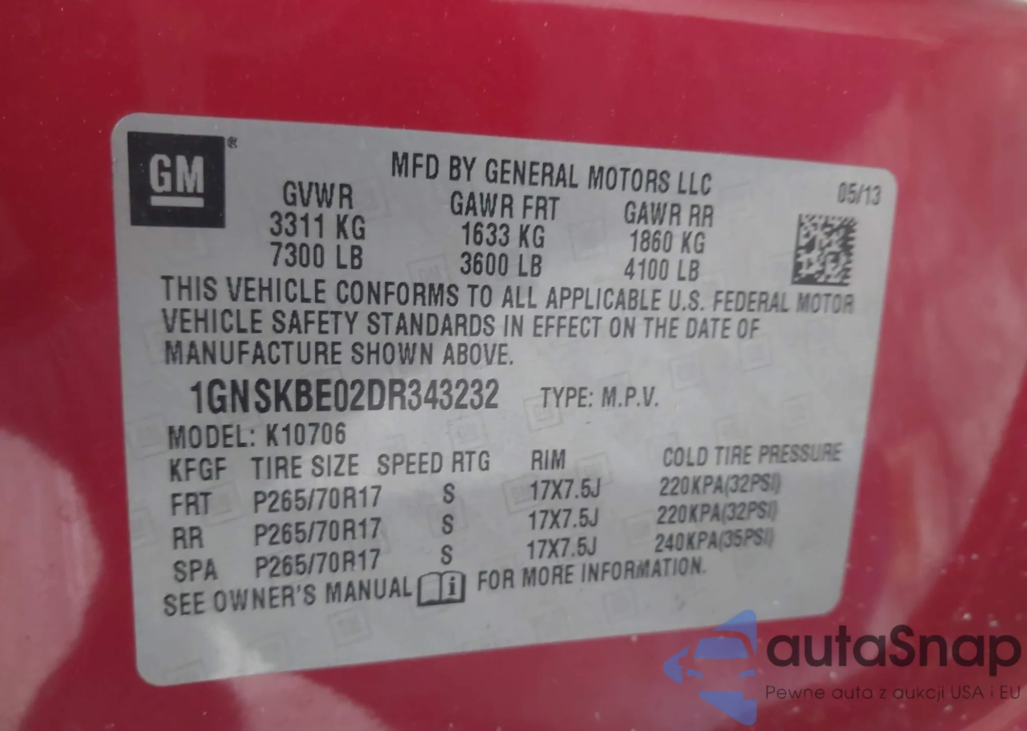 VIN: 1GNSKBE02DR343232