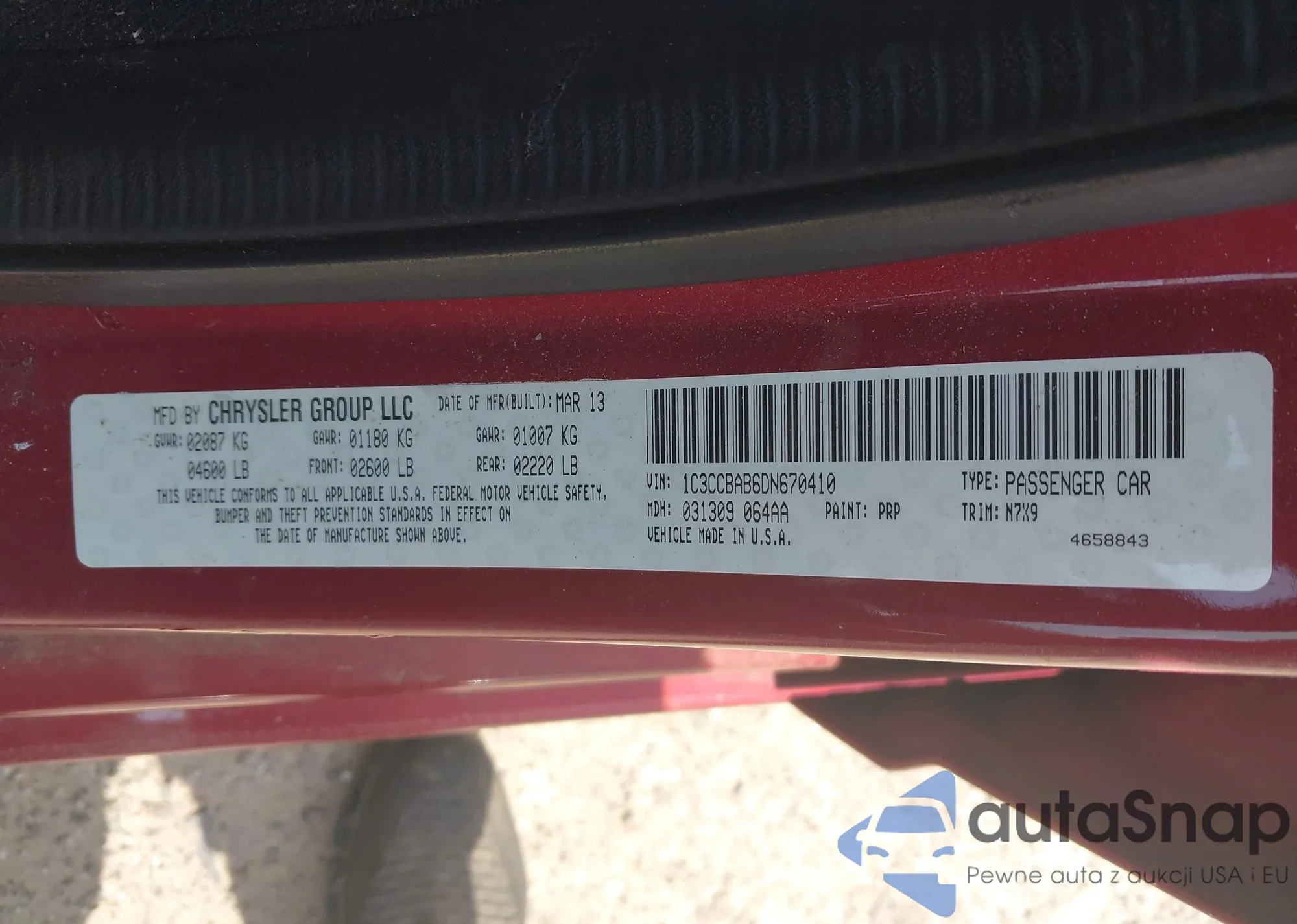 • VIN: 1C3CCBAB6DN670410