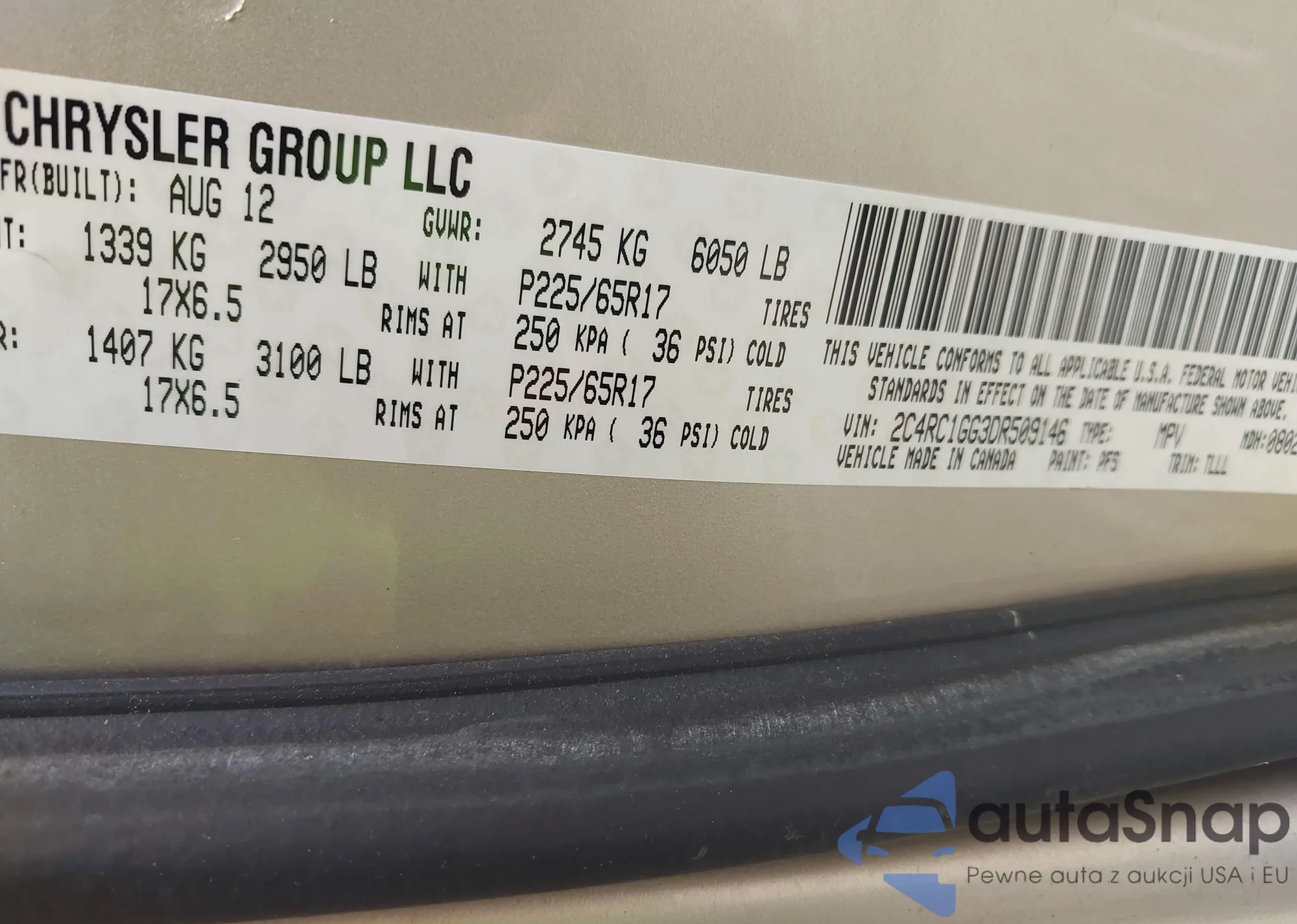 VIN: 2C4RC1GG3DR509146