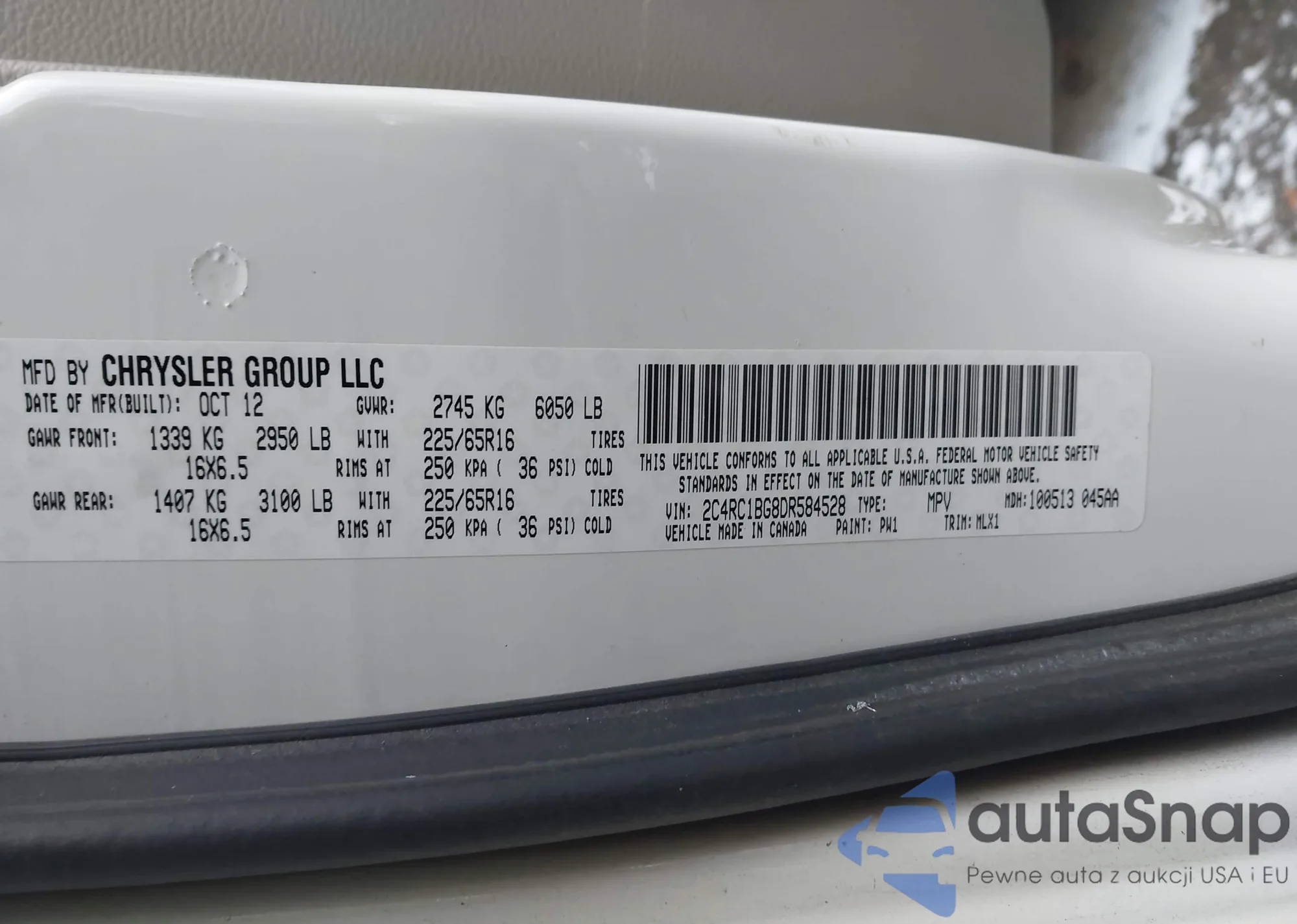 VIN: 2C4RC1BG8DR584528