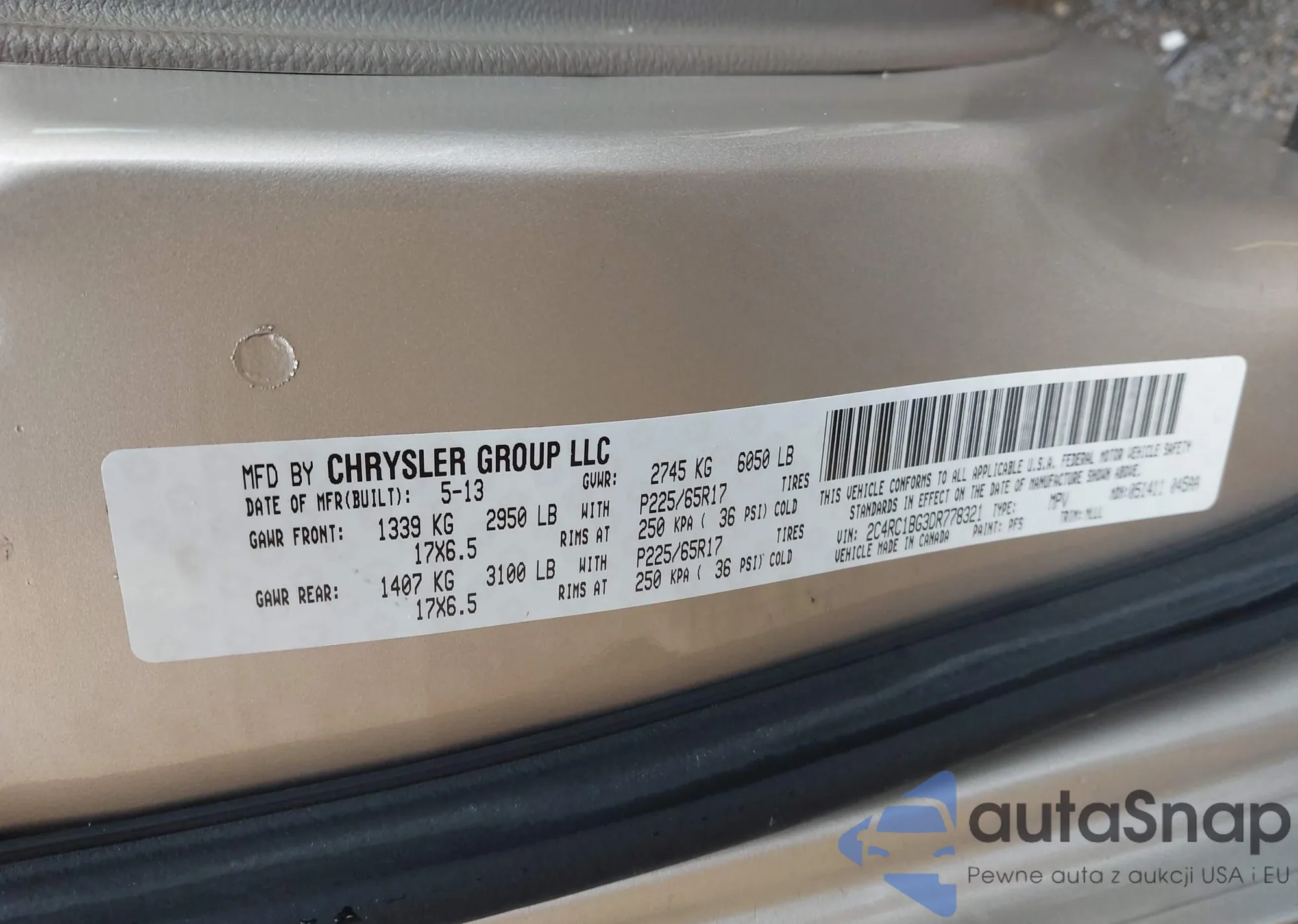 VIN: 2C4RC1BG3DR778321