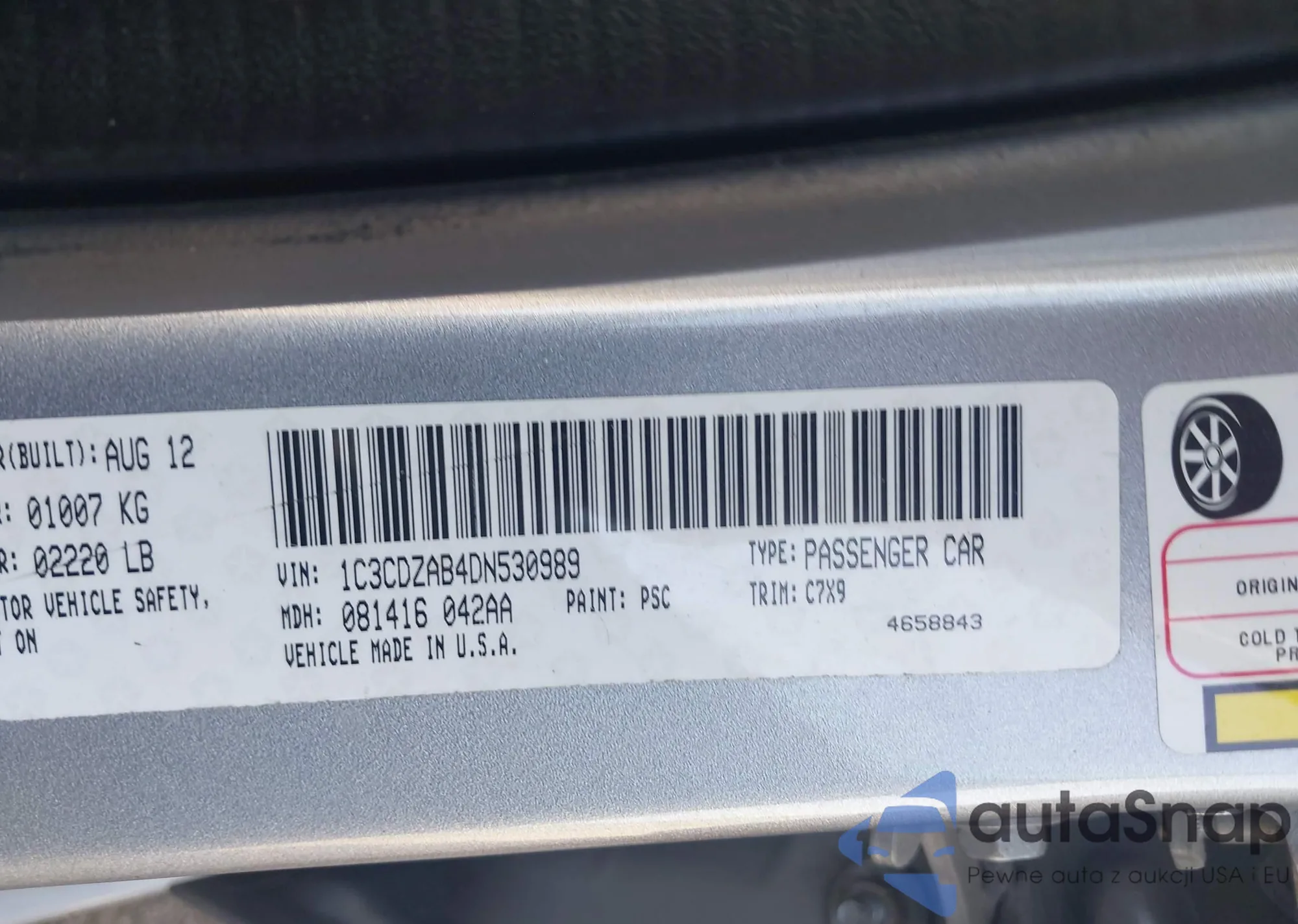VIN: 1C3CDZAB4DN530989