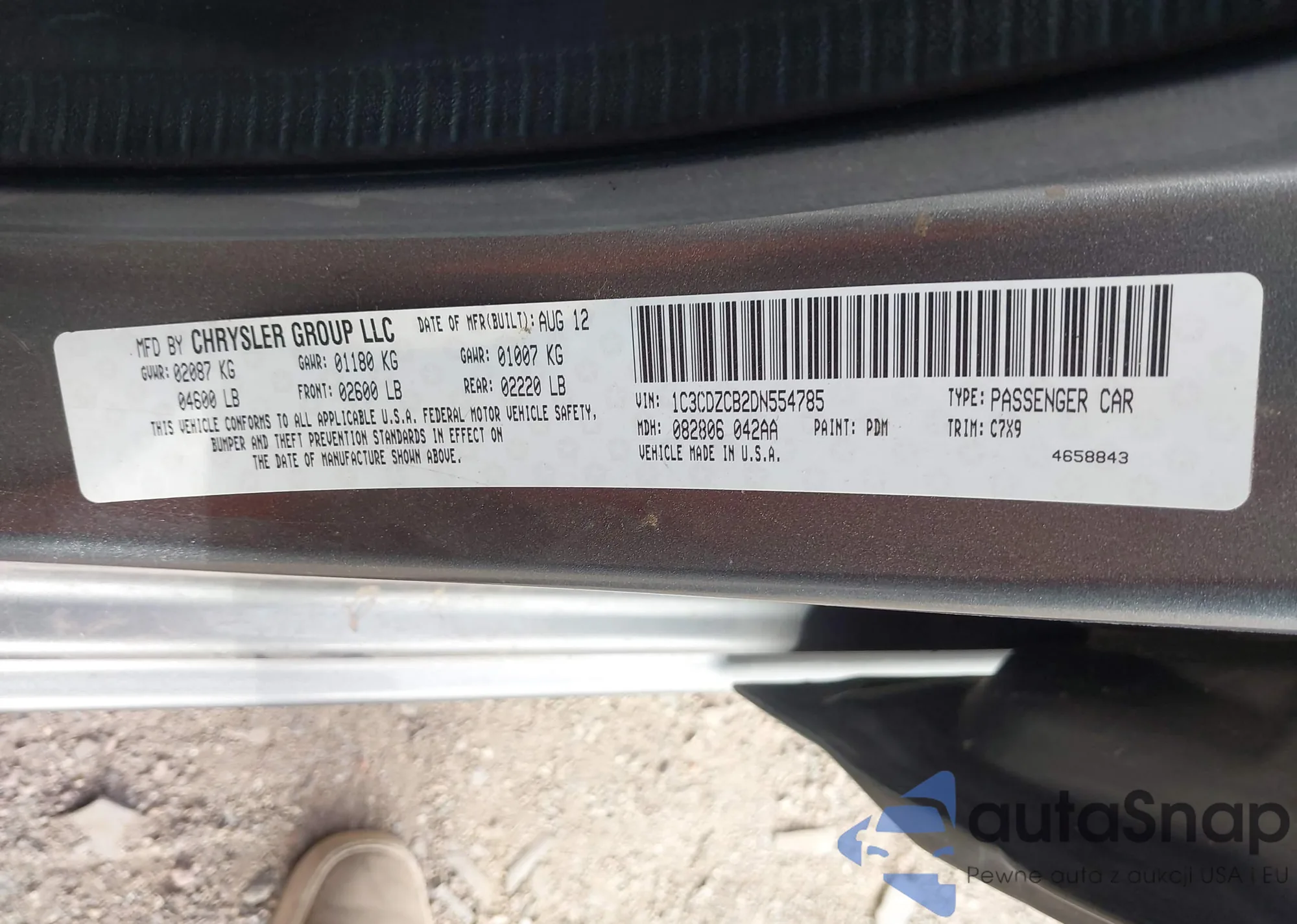 VIN: 1C3CDZCB2DN554785