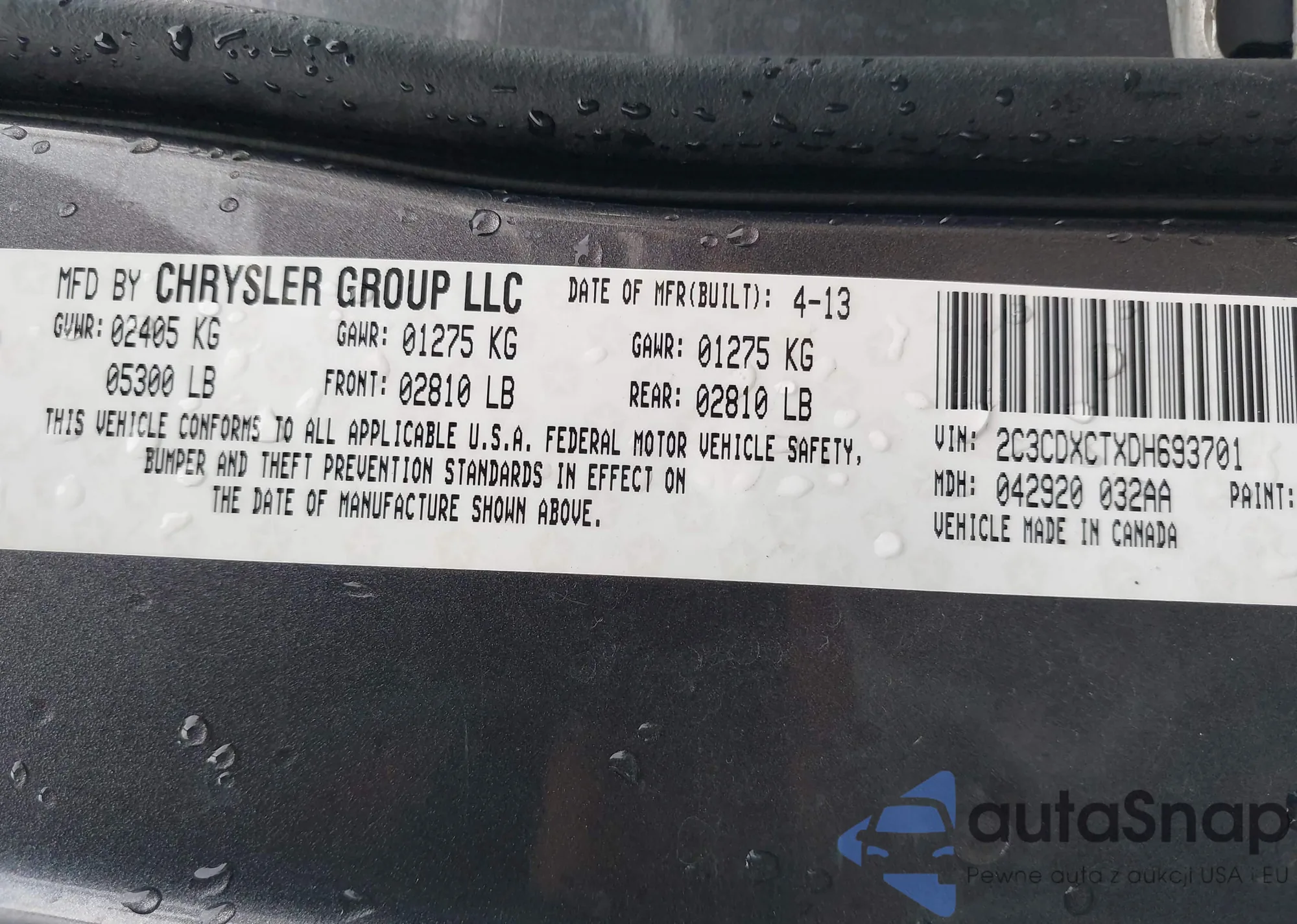 Автомобиль Dodge Charger 2013 (VIN 2C3CDXCTXDH693701) ранее не участвовал в торгах. Документы чистые, пробег соответствует или ниже среднего по рынку. Продаётся страховой компанией — рекомендуем покупку. Доставка в порт займет около 6–8 недель.