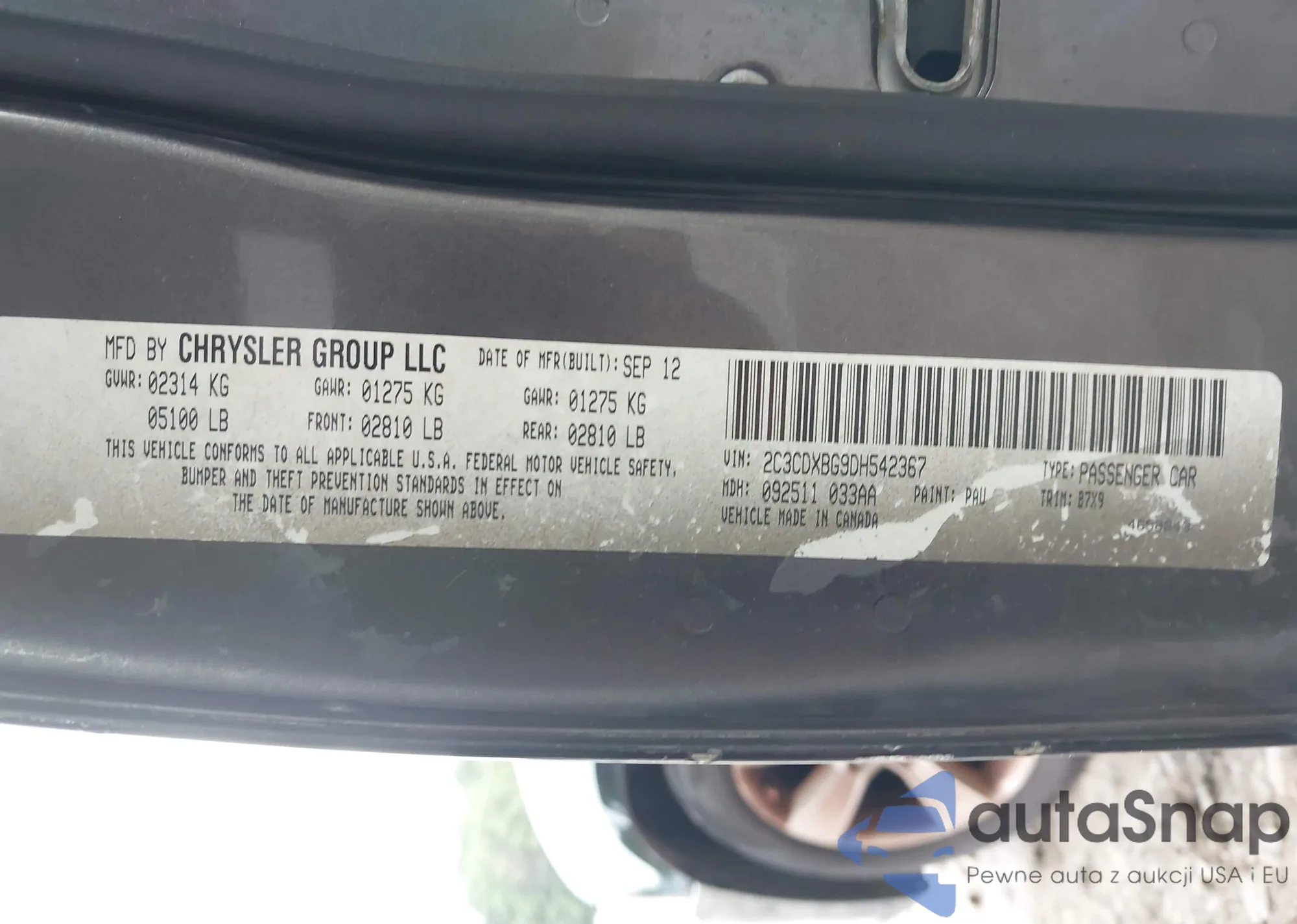 VIN: 2C3CDXBG9DH542367