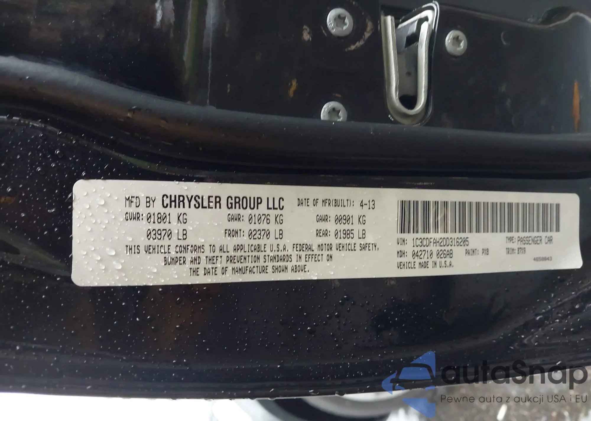 VIN: 1C3CDFAH2DD316205